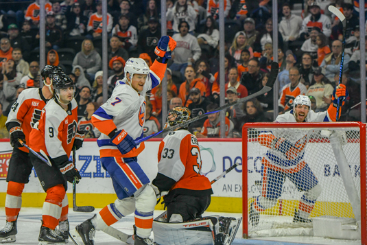 PHILADELPHIA – The Flyers’ Trevor Zegras hit for a double in regulation, and scored the game0winner on penalties for a 4-3 win over the visiting New York Islanders on Saturday afternoon. The two goals were his first with the Flyers. “It felt nice,” Zegras said. “The fans are so great. To do it front of them is special for sure. … It was a big win for us back at home and we want to be a tough team to play here, so pretty fired up about that.” Christian Dvorak also scored for the Flyers in regulation. Samuel Ersson made … Continue reading