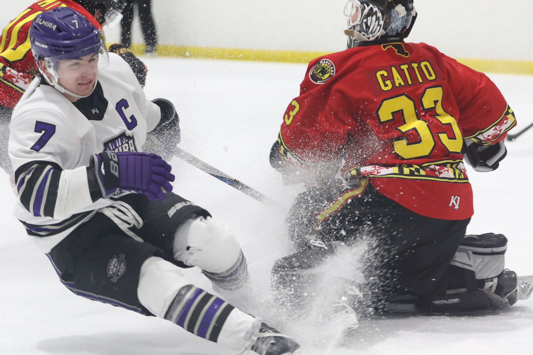 The Maryland Black Bears took the ice Friday night, riding an eight game win streak where they outscored opponents 45-13 in that span. The Elmira Aviators had other ideas, however, as they used a four goal second period to down the Black Bears in overtime by the score of 5-4. Maryland forward Harrison Smith started the scoring in the second period with a pair of highlight-reel goals. For his first, Smith went inside-outside on a defenseman and put the puck glove side on Elmira goaltender Aidan McKenna for a 1-0 lead. Less than five minutes later, Smith received a drop … Continue reading