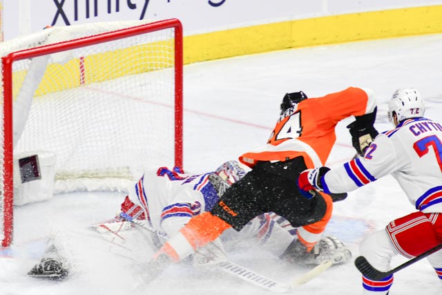 “When you’re out with him, try and get into the area and his stick usually finds the puck,” Fox said. “I thought that line, seems like every game they’re working the [offensive]-zone cycle well and getting good chances. To get rewarded with that goal there was nice, but I thought we had a lot of zone time that shift, and Kreider’s stick usually seems to find the puck.”