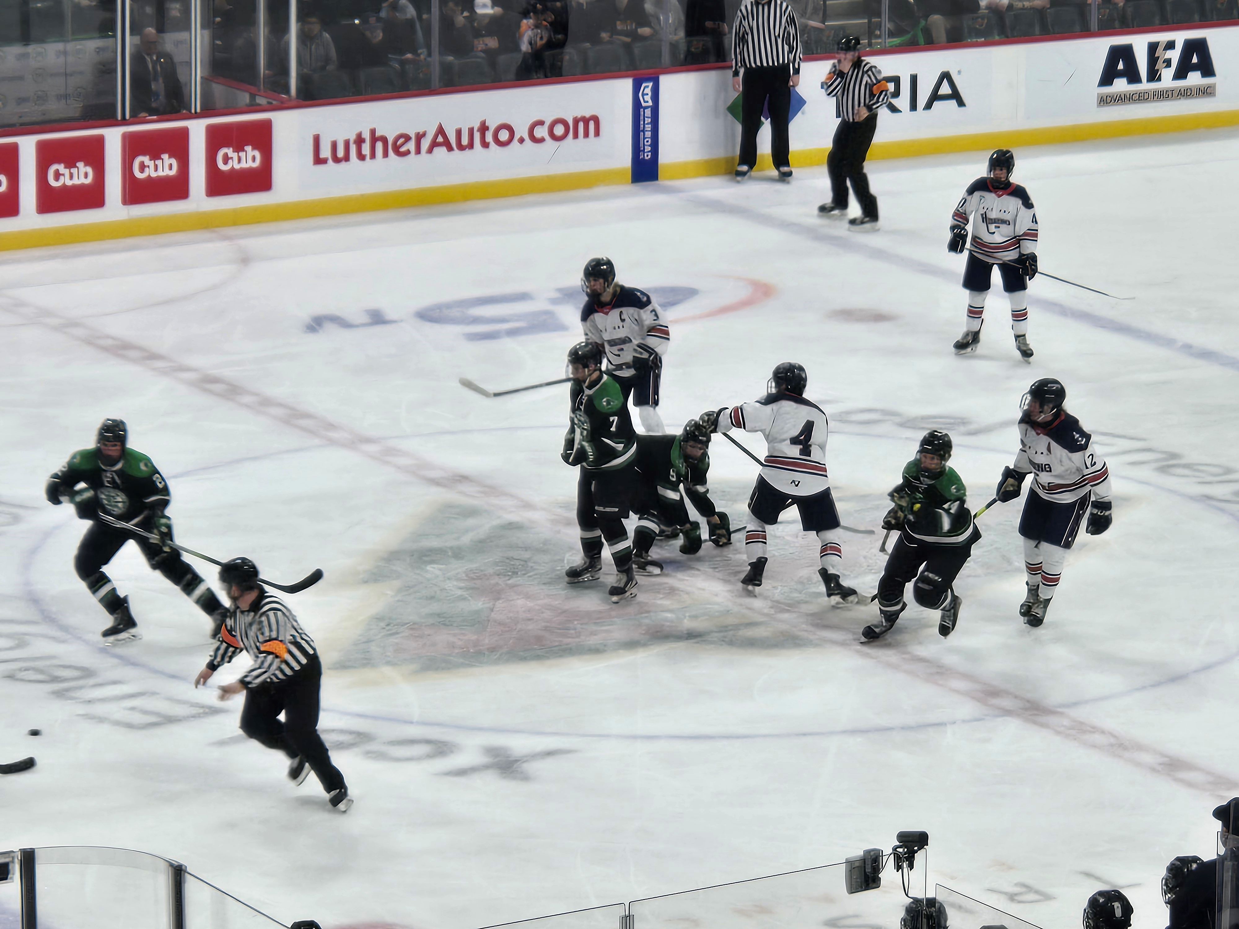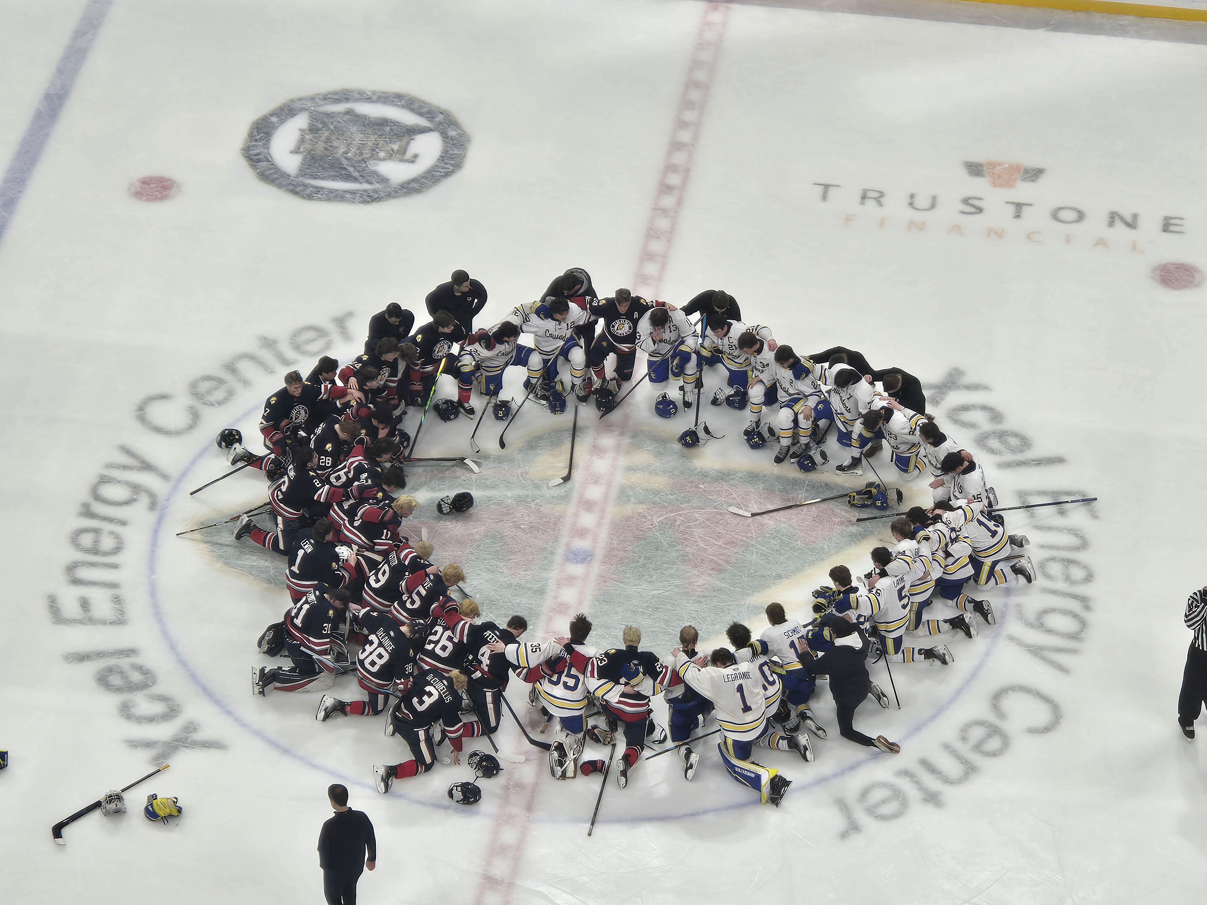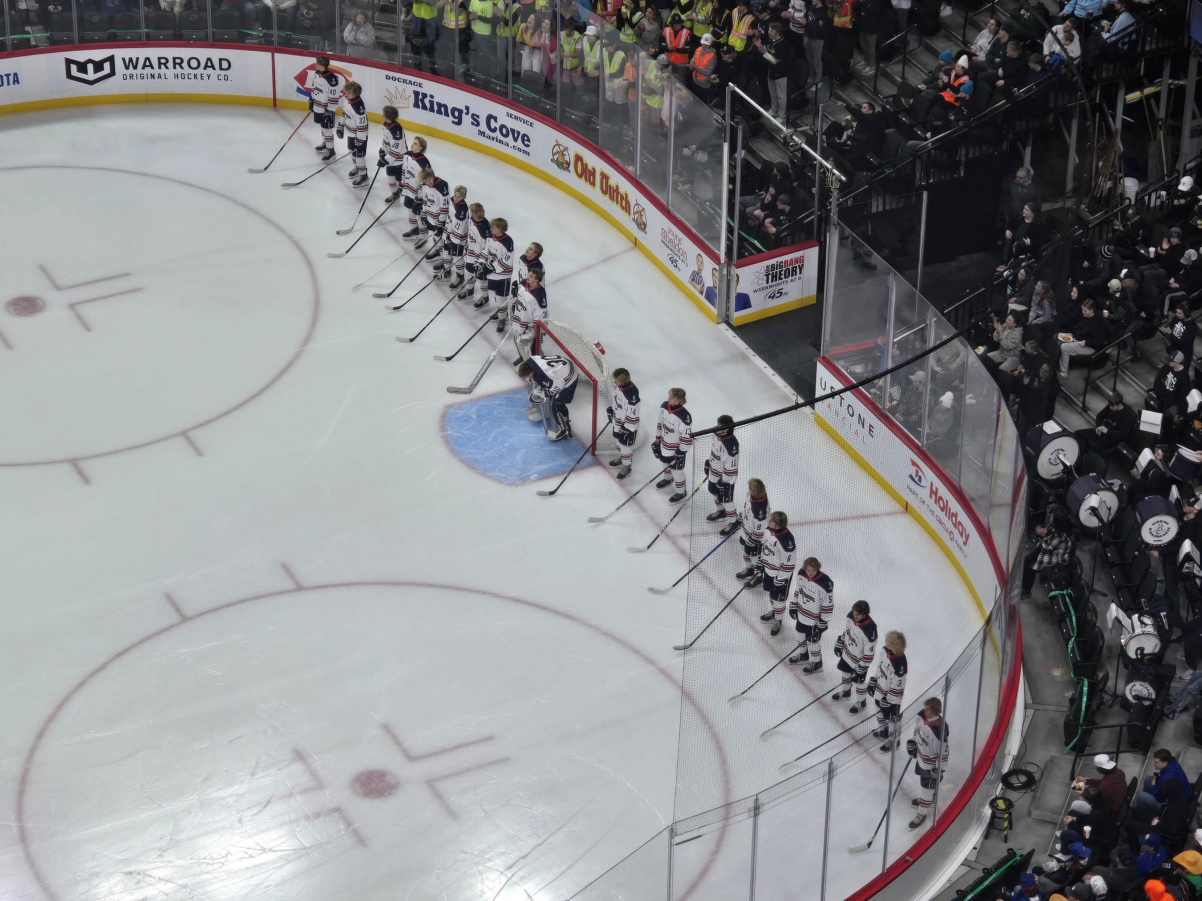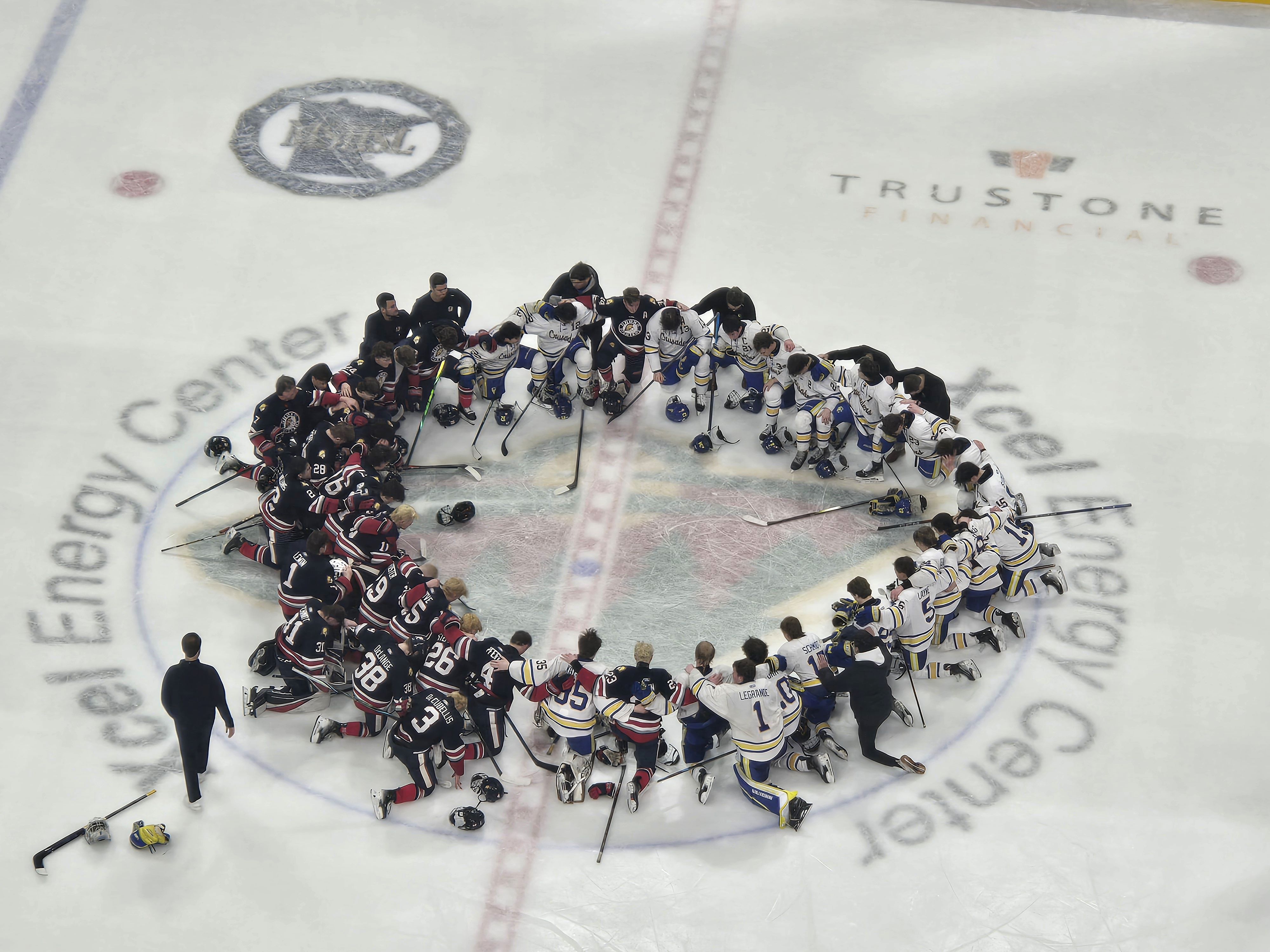 St. Paul, MN – Outside of the center ice dot, there are eight face-off spots on the standard ice hockey rink, the same number as there are teams left in the Minnesota High School Hockey Tournament to determine hockey supremacy in what is the third day of the four-day competition.