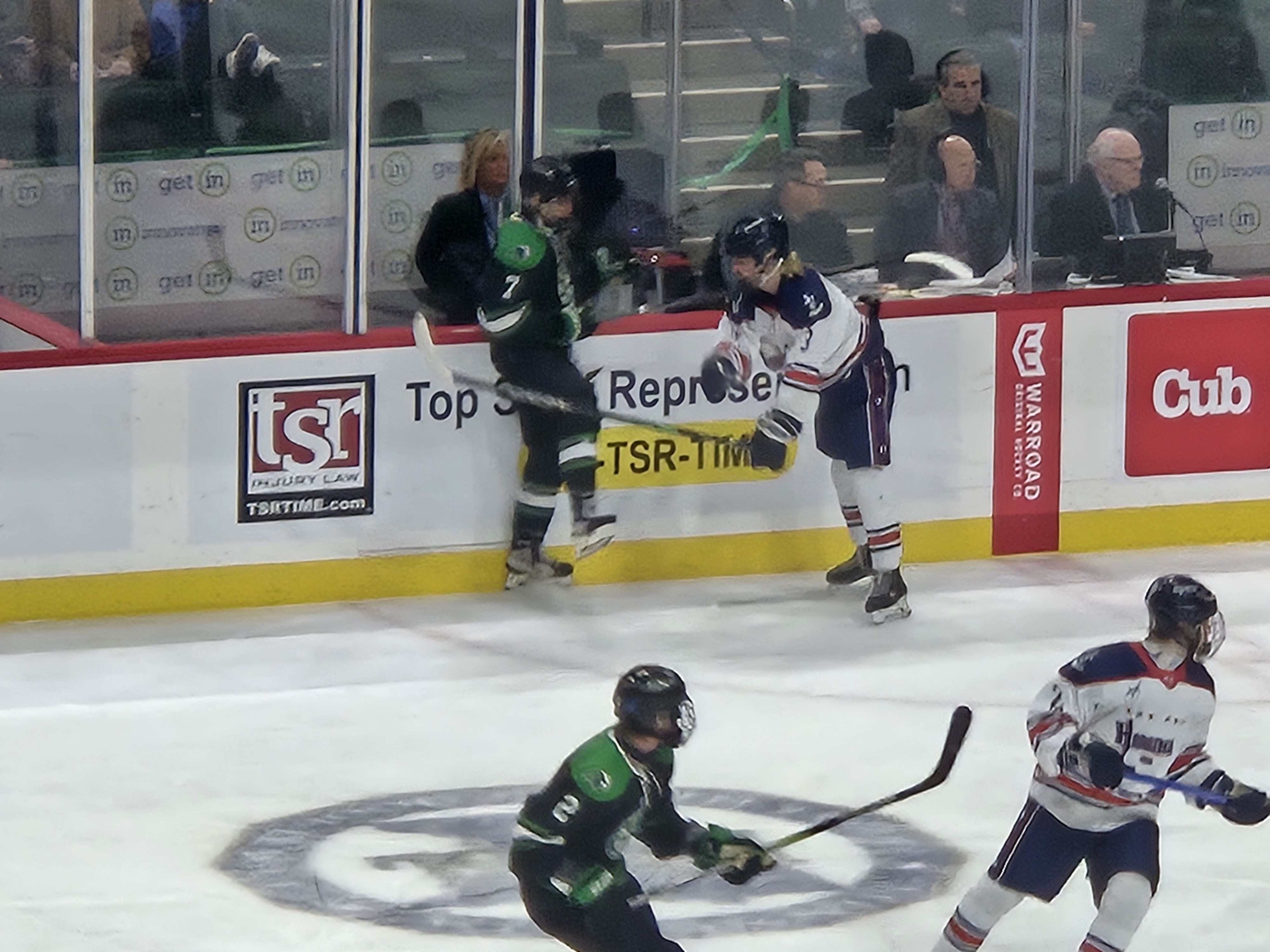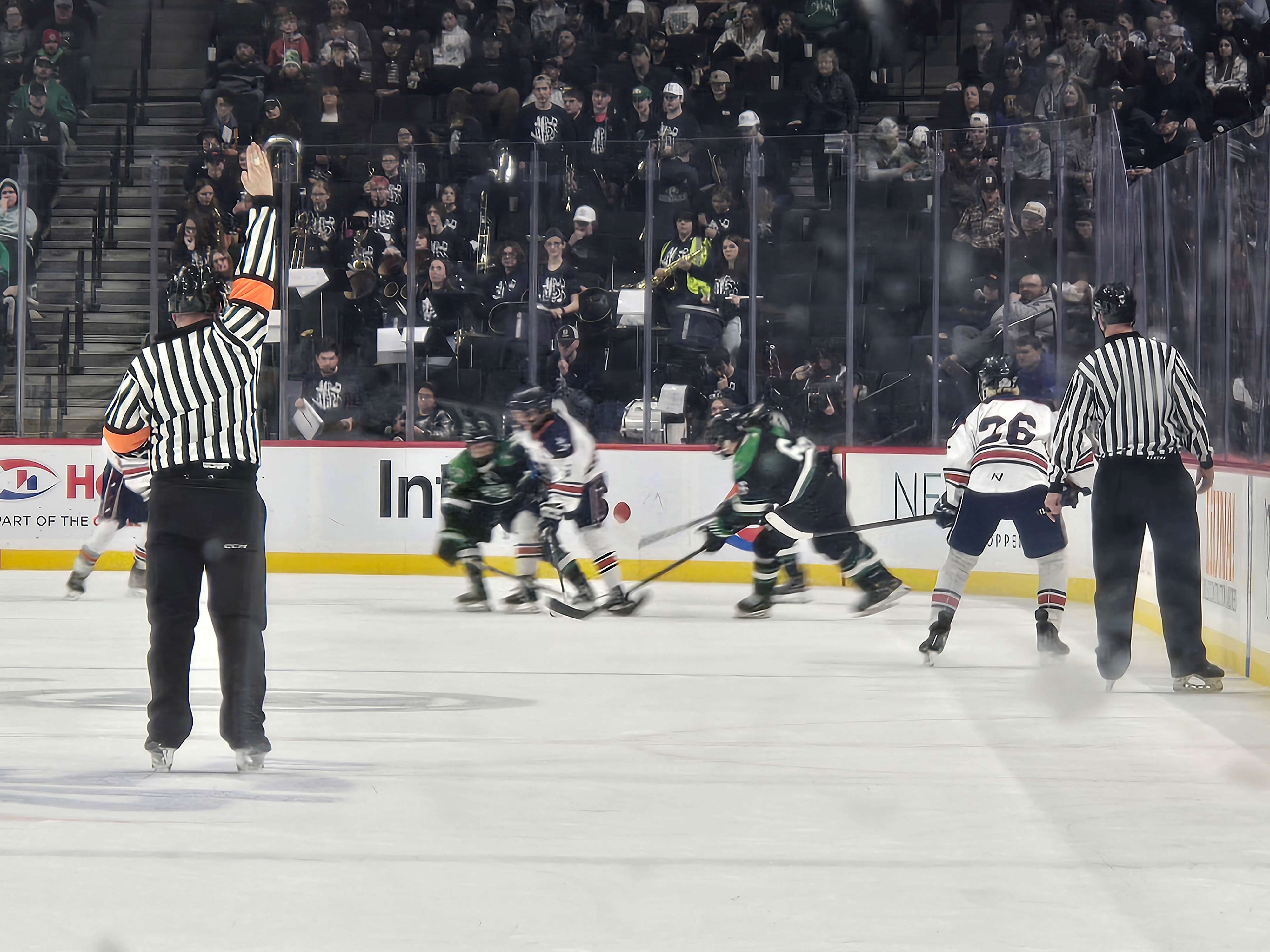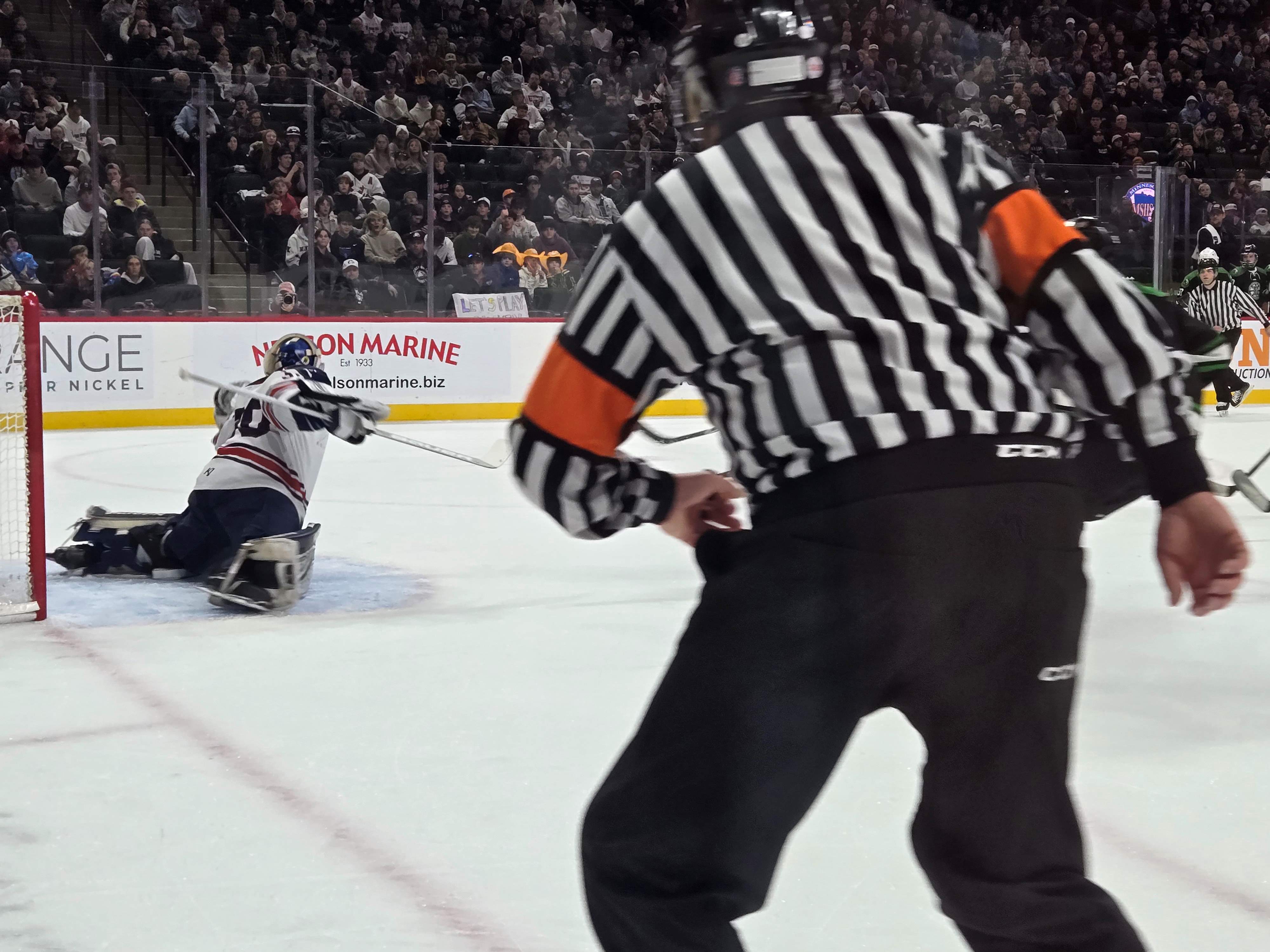St. Cloud kept things in control to open the third period and just more than three minutes into play was awarded a penalty shot when John Hirschfield was hauled down. The anticipation of the play had the crowd on their feet, but Hirshfueld shot wide on the special shot and the game remained