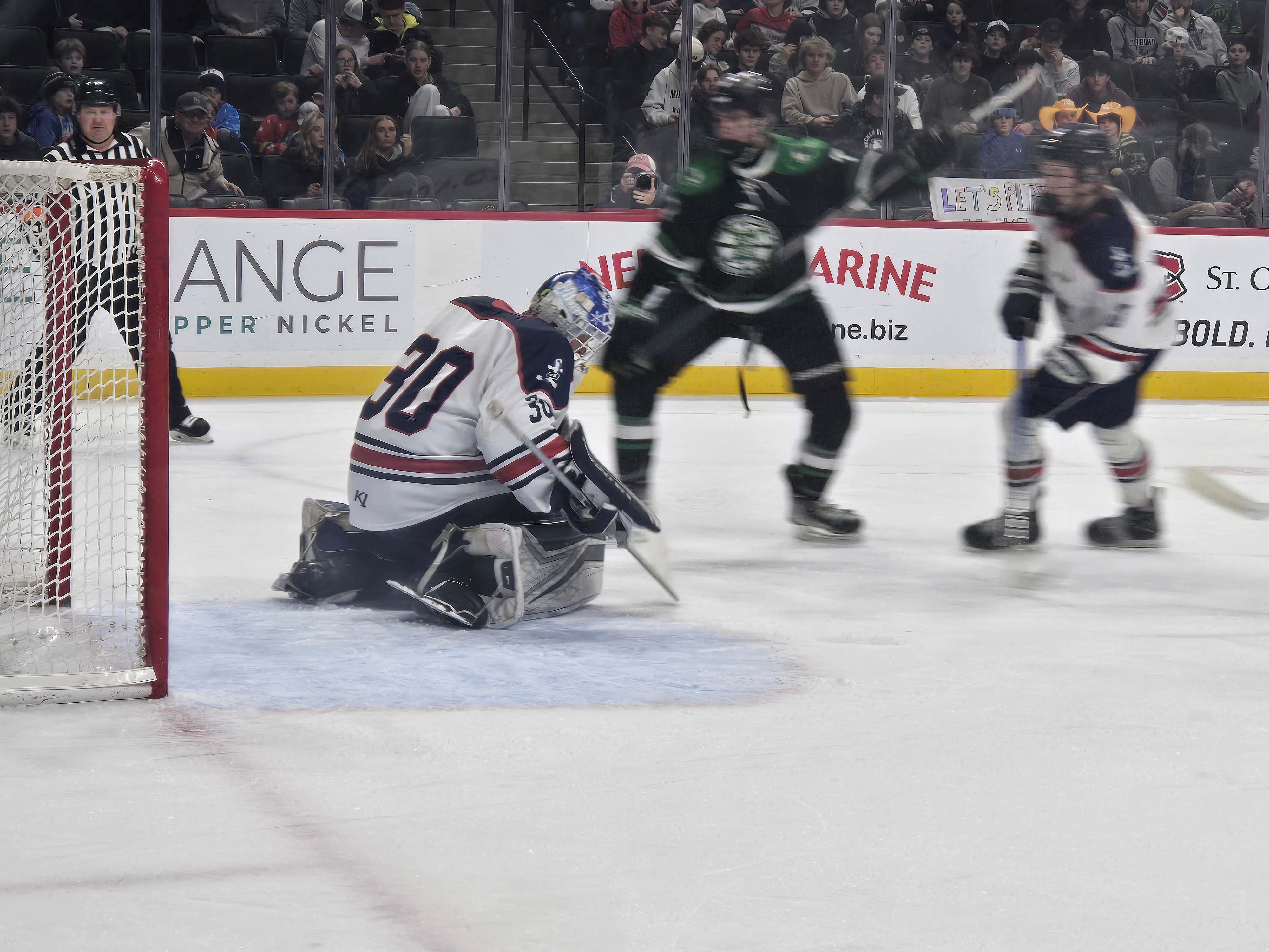 With a faster pace than the first game, both teams came out flying with action at both ends and both netminders making sensational saves during rapidly-changing sequences.