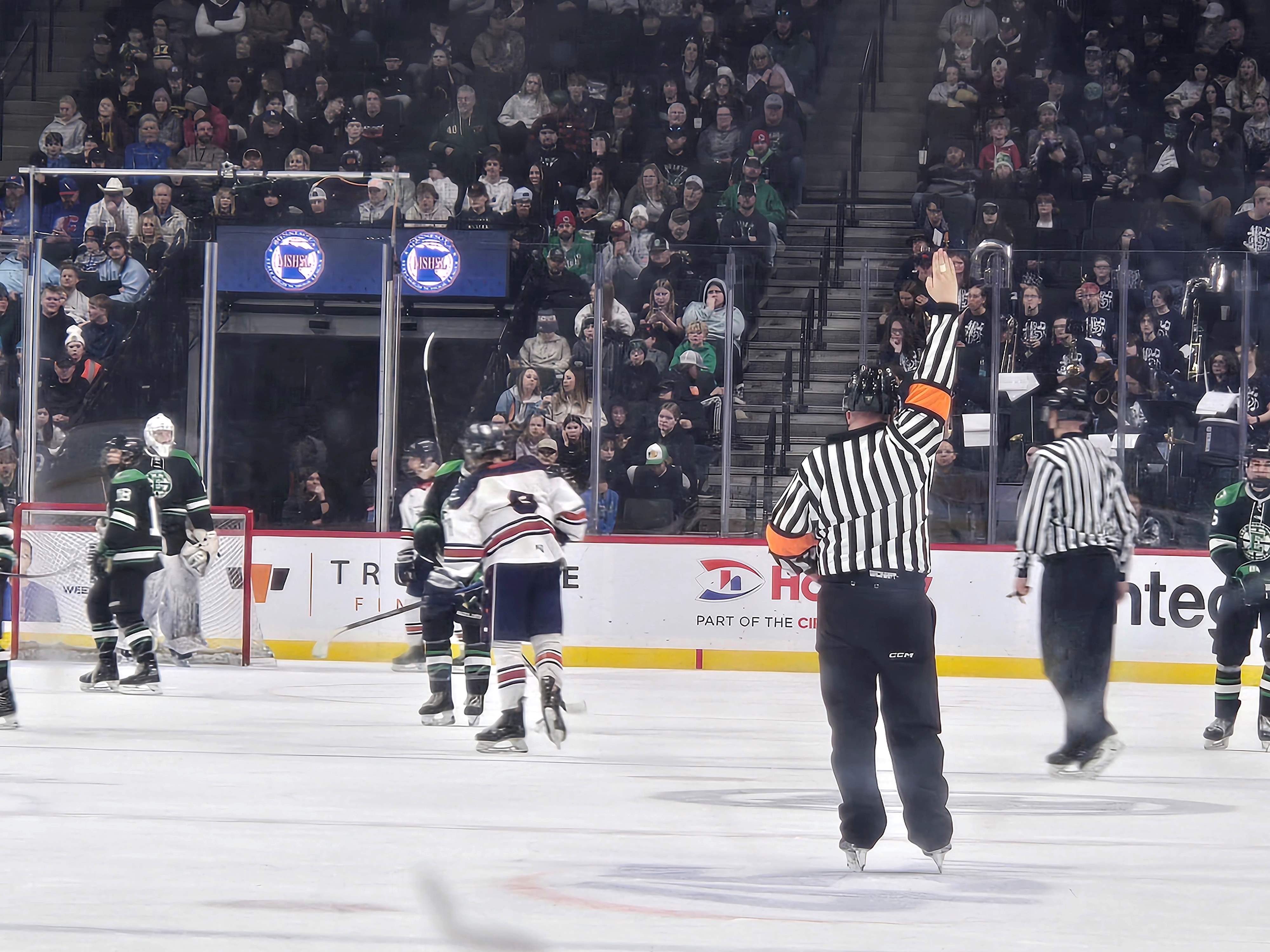In the second A game of the day, #1 seed Hibbing / Chisholm (19-9) took to the ice against #4 seed East Grand Forks Green Wave (13-13-2) in the second semi-final.