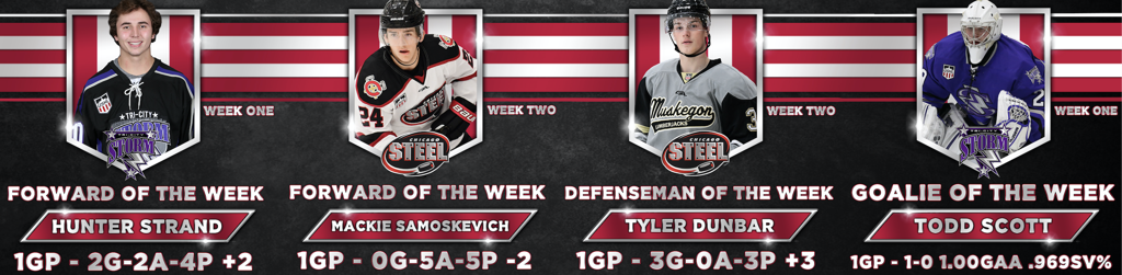 Dunbar was named Defenseman of the Week after recording a hat trick in the same Week 2 game that earned Samoskevich his weekly honor. Dunbar, a University of North Dakota commit, made Muskegon Lumberjacks history with the first ever hat trick by a defenseman with his performance. The Salut St. Marie, Mich. native topped his season total of two goals last season with the Lumberjacks in just his second game of the season.