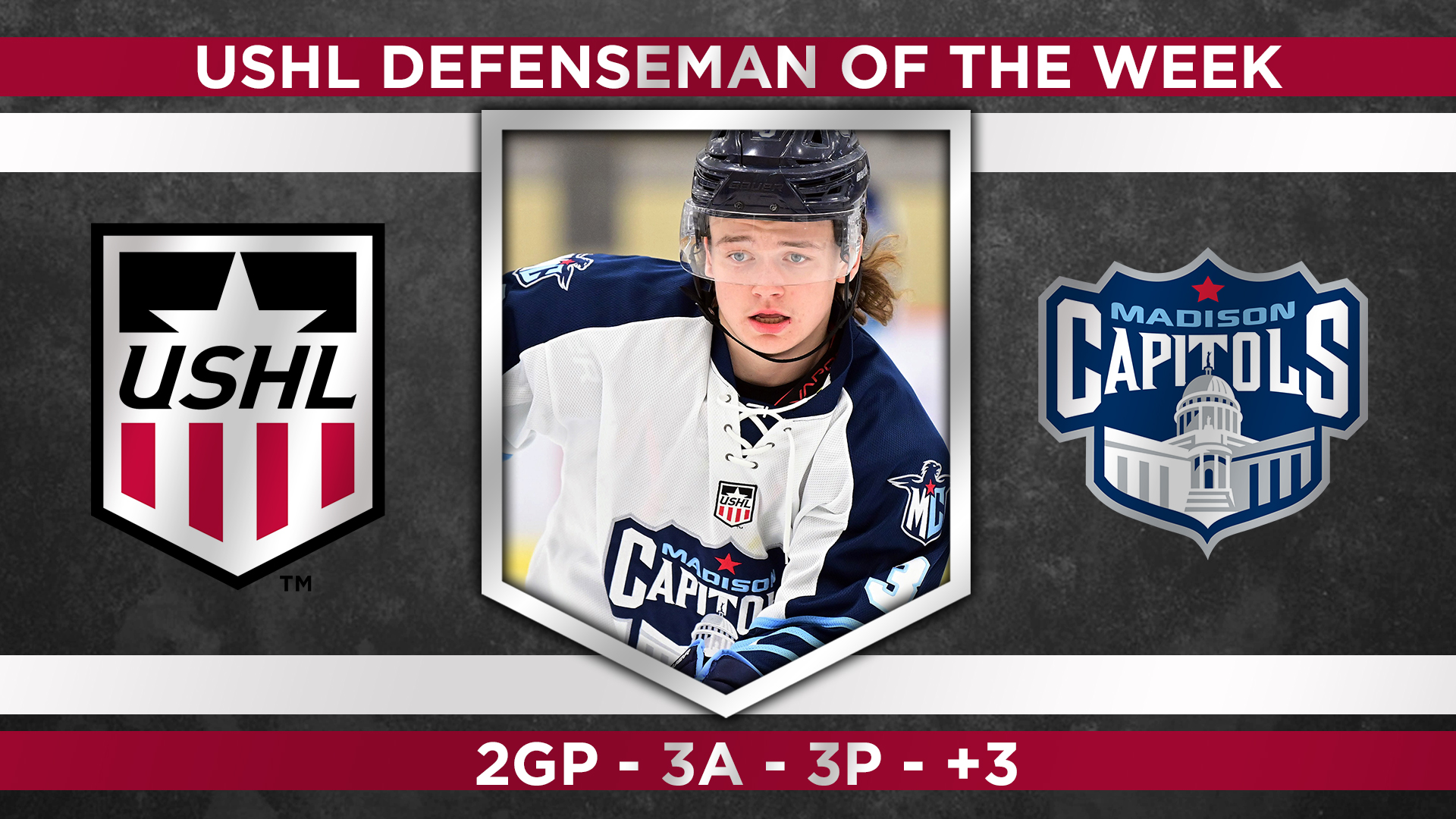 Dangos earned his first career Defenseman of the Week award last week after picking up a trio of assists, helping the Capitols to a weekend sweep. The Arizona State University commit picked up an assist on a go-ahead goal late in the second period of Friday night’s 5-2 win over the Cedar Rapids RoughRiders. The next night, Dangos picked up an assist on a game-tying goal late in the second period before registering a helper on the eventual game-winning goal in the third frame of a 5-4 win over the RoughRiders. This season, the St. Louis native has 16 points (2-14-16) in 31 games. Dangos joins teammate Luke Mittelstadt (Week 5) as a Capitols blueliner to win Defenseman of the Week this season.