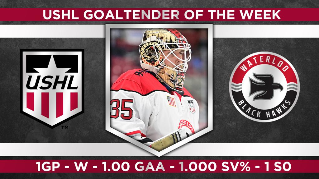 Chicago, IL – The United States Hockey League (USHL) announced Tuesday its Players of the Week for Week 2 of the 2021-22 season. For the second time in as many weeks this season, Waterloo Black Hawks netminder Jack Williams earned Goaltender of the Week honors after his second shutout of the season.