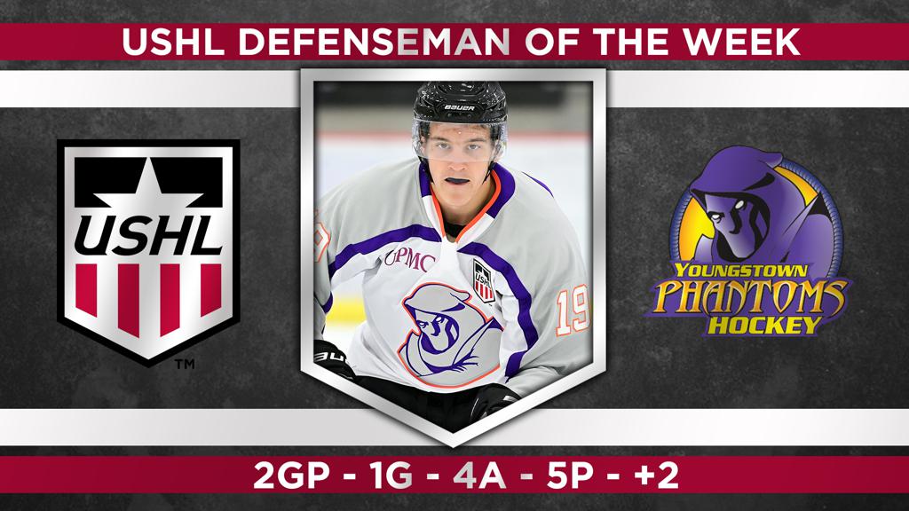 Trey Taylor was held off the scoresheet at the Fall Classic but bounced back with five points in two games (1-4-5) as the Phantoms swept both sides of a home-and-home weekend against the USA Hockey National Team Development Program (NTDP). The Clarkson University commit’s first USHL point came as he picked up an assist on Youngstown’s first goal of the weekend just 20 seconds into Friday night’s action. The next night, Taylor recorded his first goal in the USHL midway through the second period, on the power play, as the Phantoms took a commanding 6-0 lead before eventually winning 8-1.