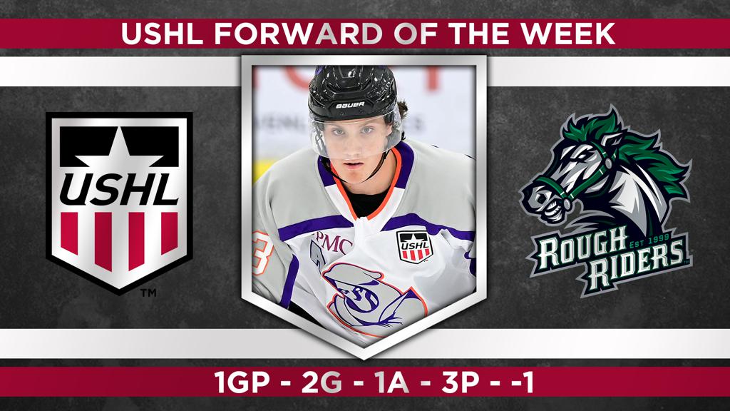 After being acquired by the Cedar Rapids RoughRiders earlier in the week, Burtch earned his first Forward of the Week award after picking up three points (2-1-3) in his first career game with Cedar Rapids after playing 55 games with the Youngstown Phantoms in the last two seasons. The Western Michigan University commit picked up all three of his points on the powerplay, including a helper on the game’s first goal. After the Des Moines Buccaneers answered back with four-straight goals, Burtch struck for his first powerplay goal of the night midway through the third period. With just 17 seconds remaining in regulation, Burtch struck again on the powerplay bringing the game to its final 6-4 score in favor of Des Moines. In 55 games with the Phantoms, Burtch had 40 points (21-19-40), including three multi-goal games and one hat trick.