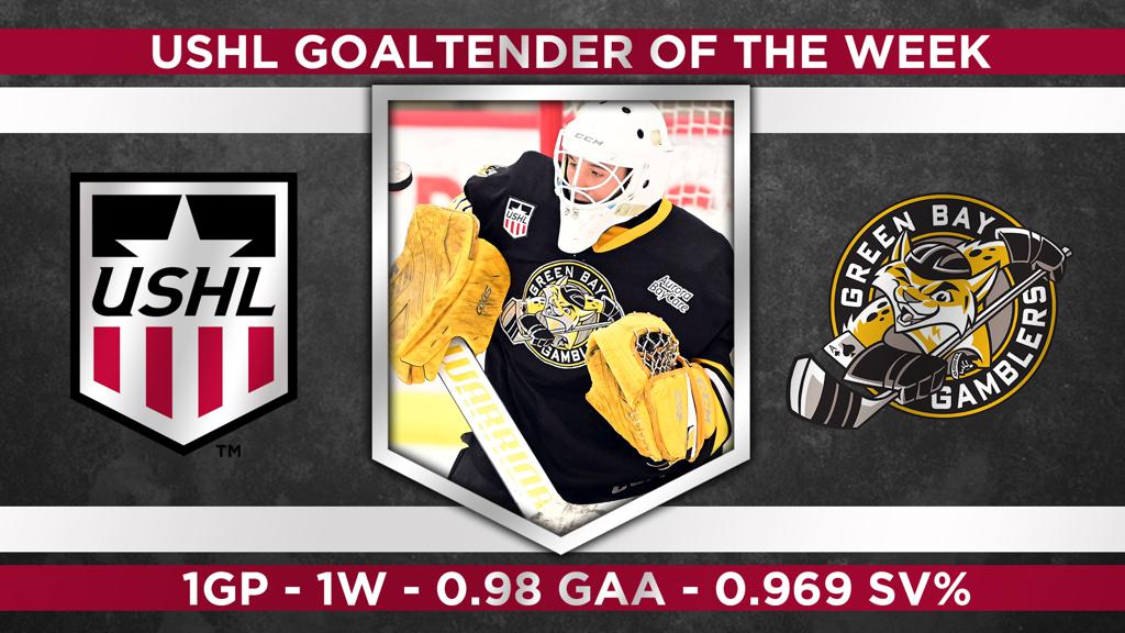 For the third time in three seasons, Randazzo picked up Goaltender of the Week honors. The Air Force Academy commit previously earned the honor during Week 7 of the 2020-21 season with the Gamblers and previously on January 7, 2019 with the Dubuque Fighting Saints. Randazzo was a brick wall for the Gamblers on Friday night as he turned aside 31 of the 32 shots the league-leading Chicago Steel sent his way, backstopping his Gamblers to a 2-1 overtime victory. The third-year netminder has been great for Green Bay this season with a 3-1-0-0 record and a 3.25 goals against average and 0.901 save percentage. In 49 league appearances over the last three seasons, Randazzo holds a 23-17-1-1 record with a 3.42 GAA and 0.884 SV%.