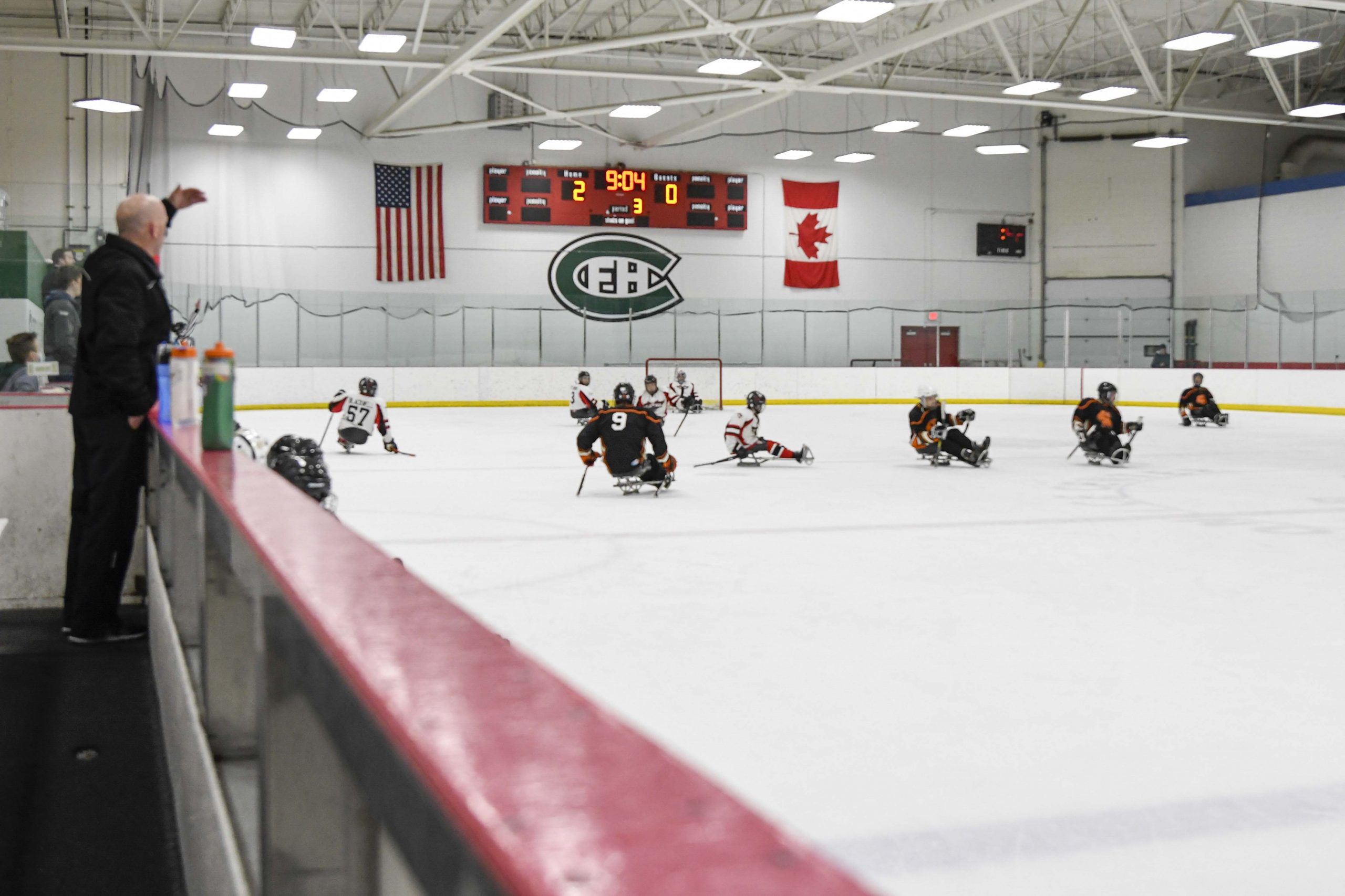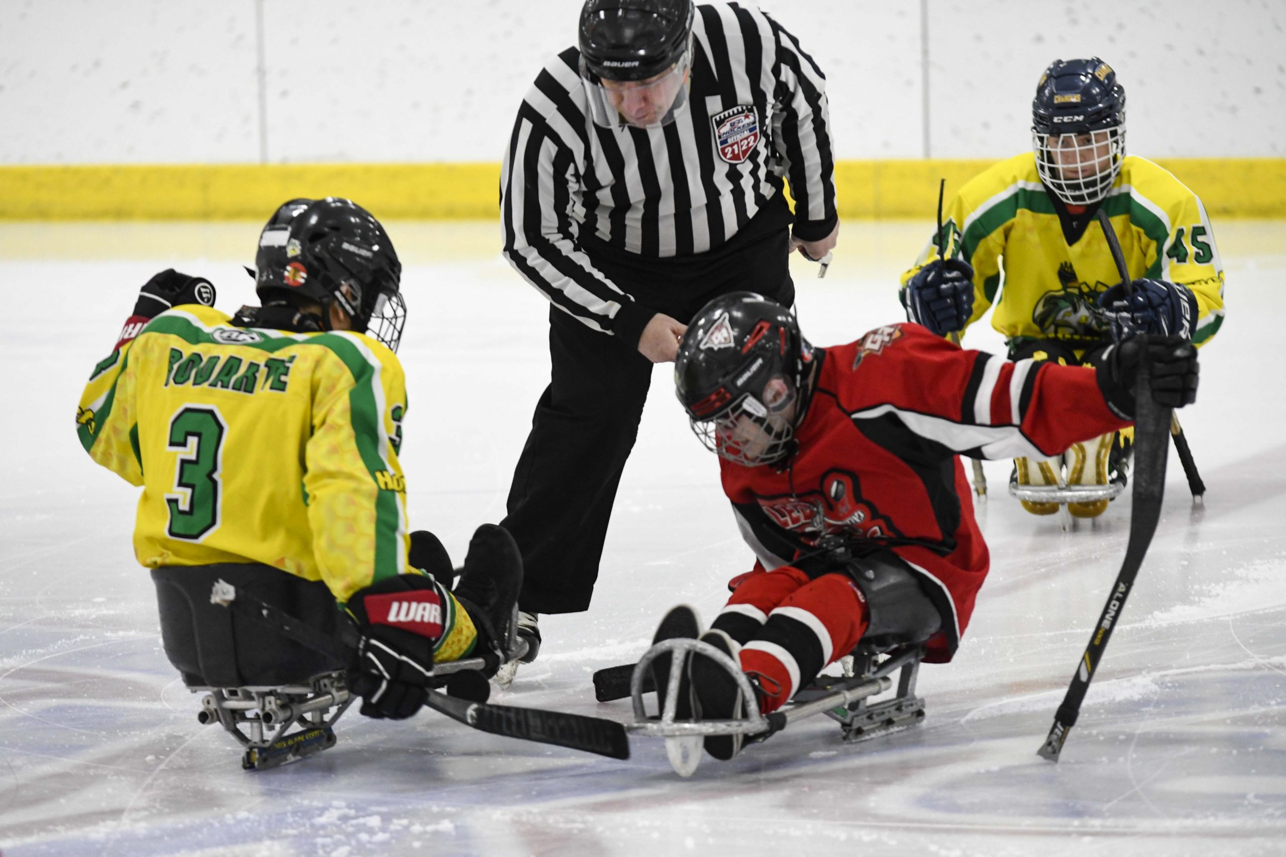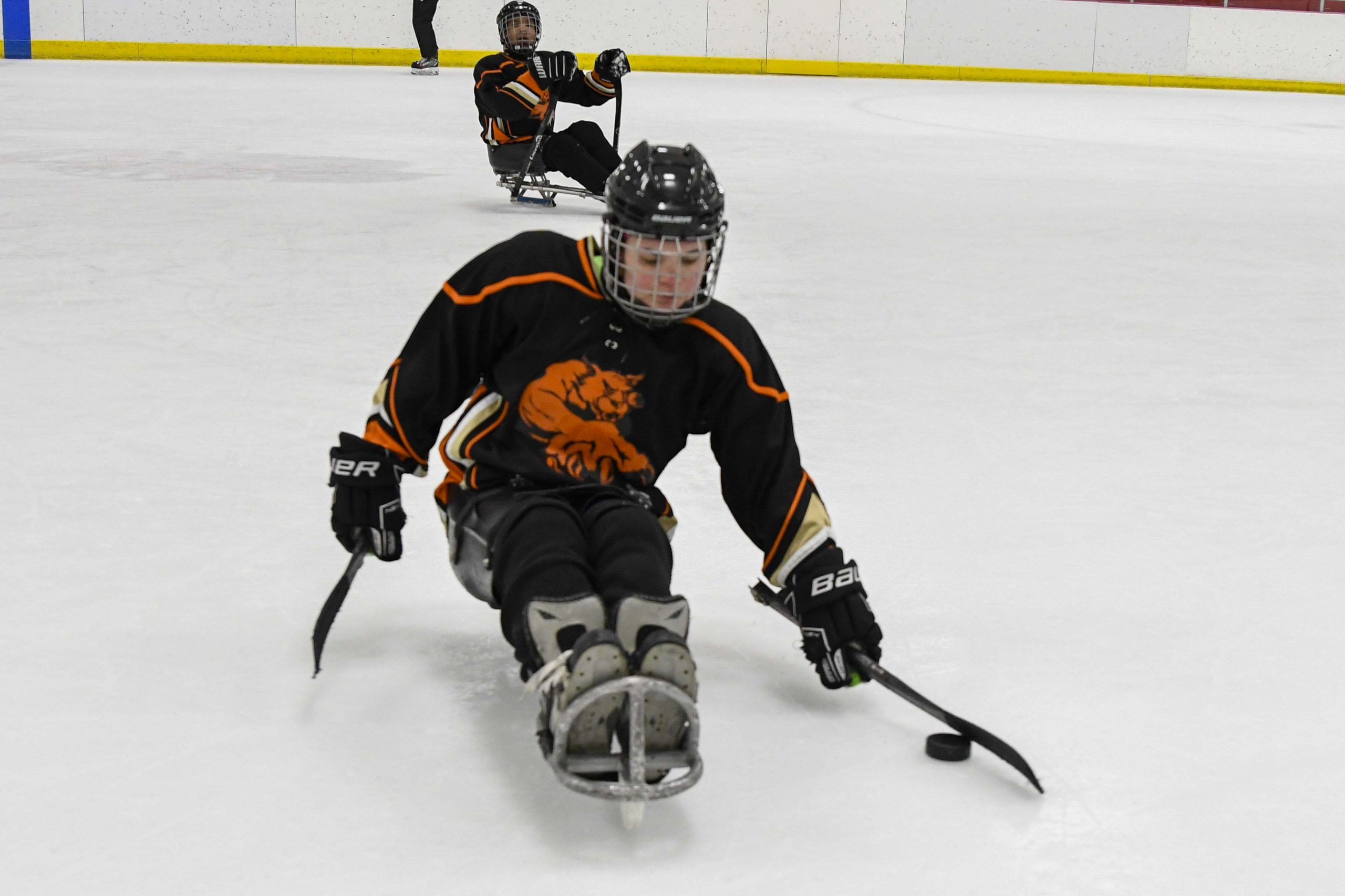 Games are played the same as far as the rules of hockey. The difference is in the equipment. The players are on a hockey sled, which is an aluminum frame with a plastic bucket on it. A player sits in the bucket and underneath them are two actual steel skate blades that are sharpened in the same way as a hockey skate.