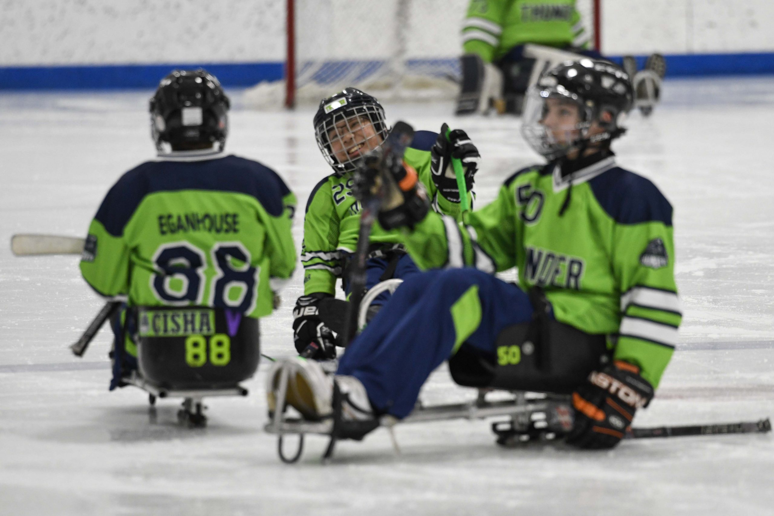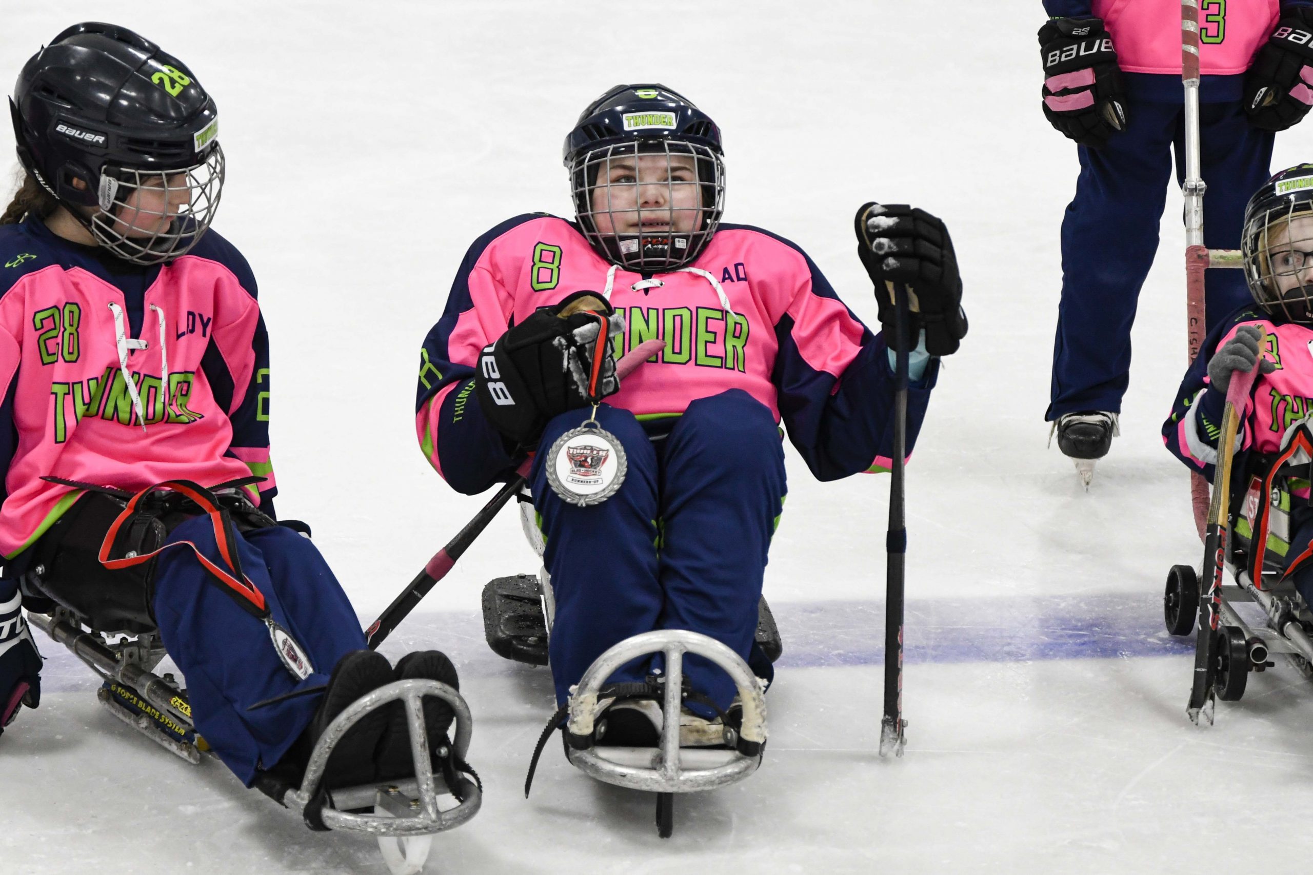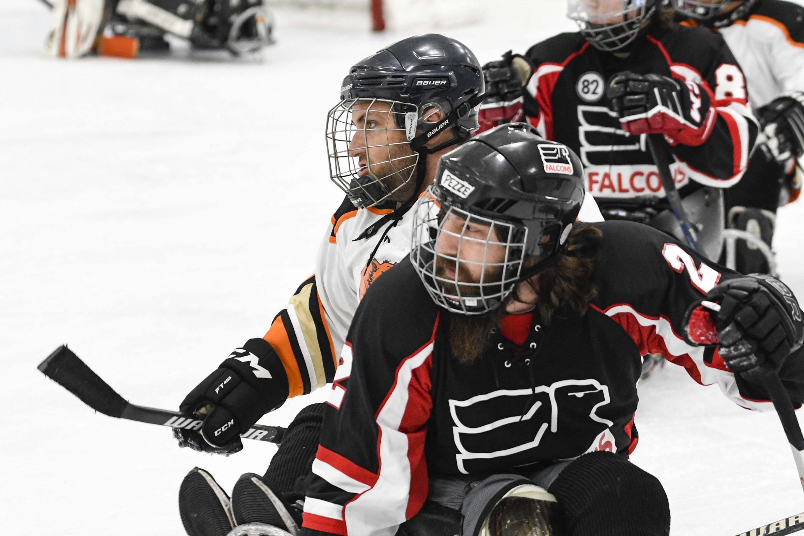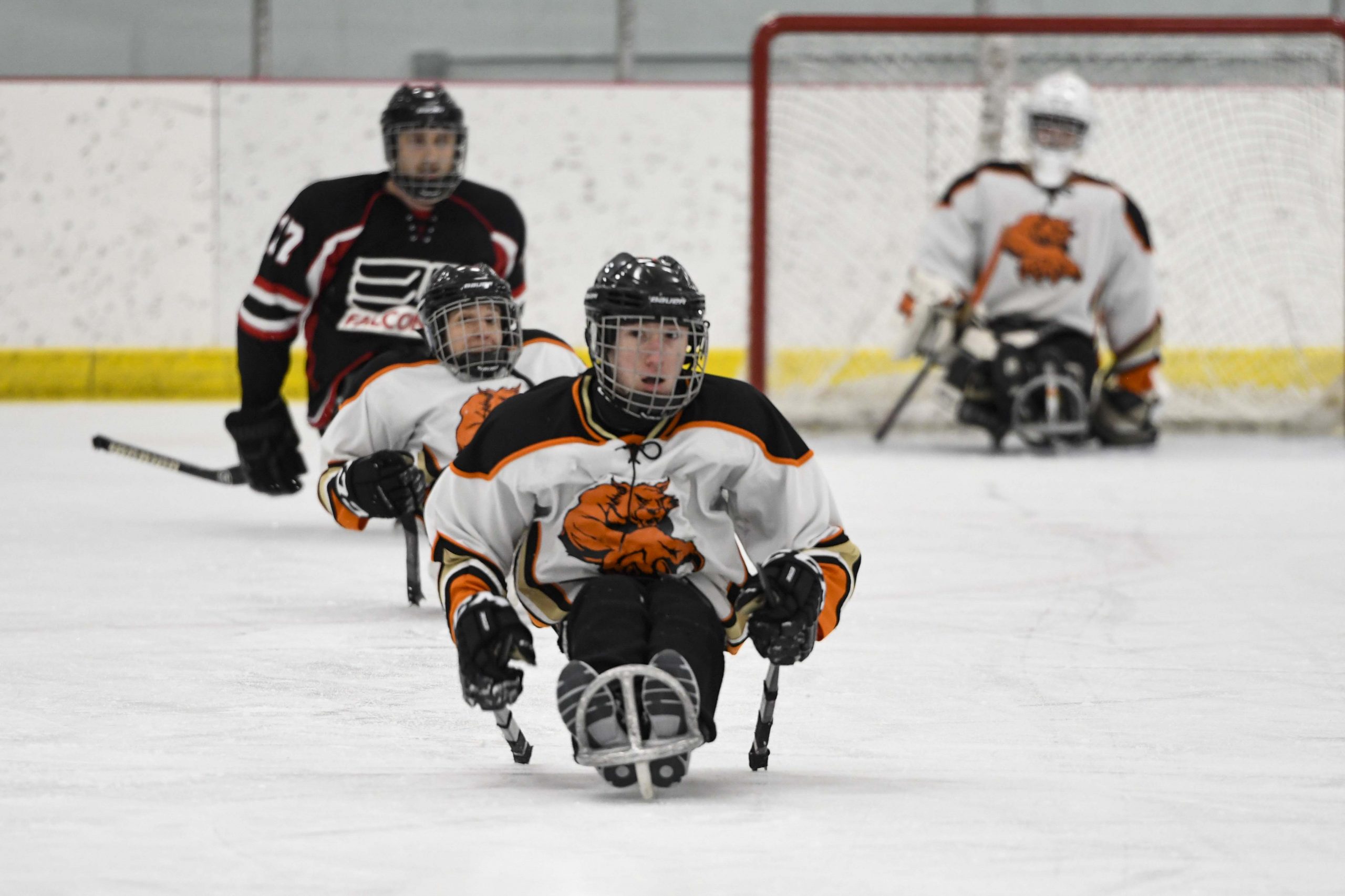 Games are played the same as far as the rules of hockey. The difference is in the equipment. The players are on a hockey sled, which is an aluminum frame with a plastic bucket on it. A player sits in the bucket and underneath them are two actual steel skate blades that are sharpened in the same way as a hockey skate.