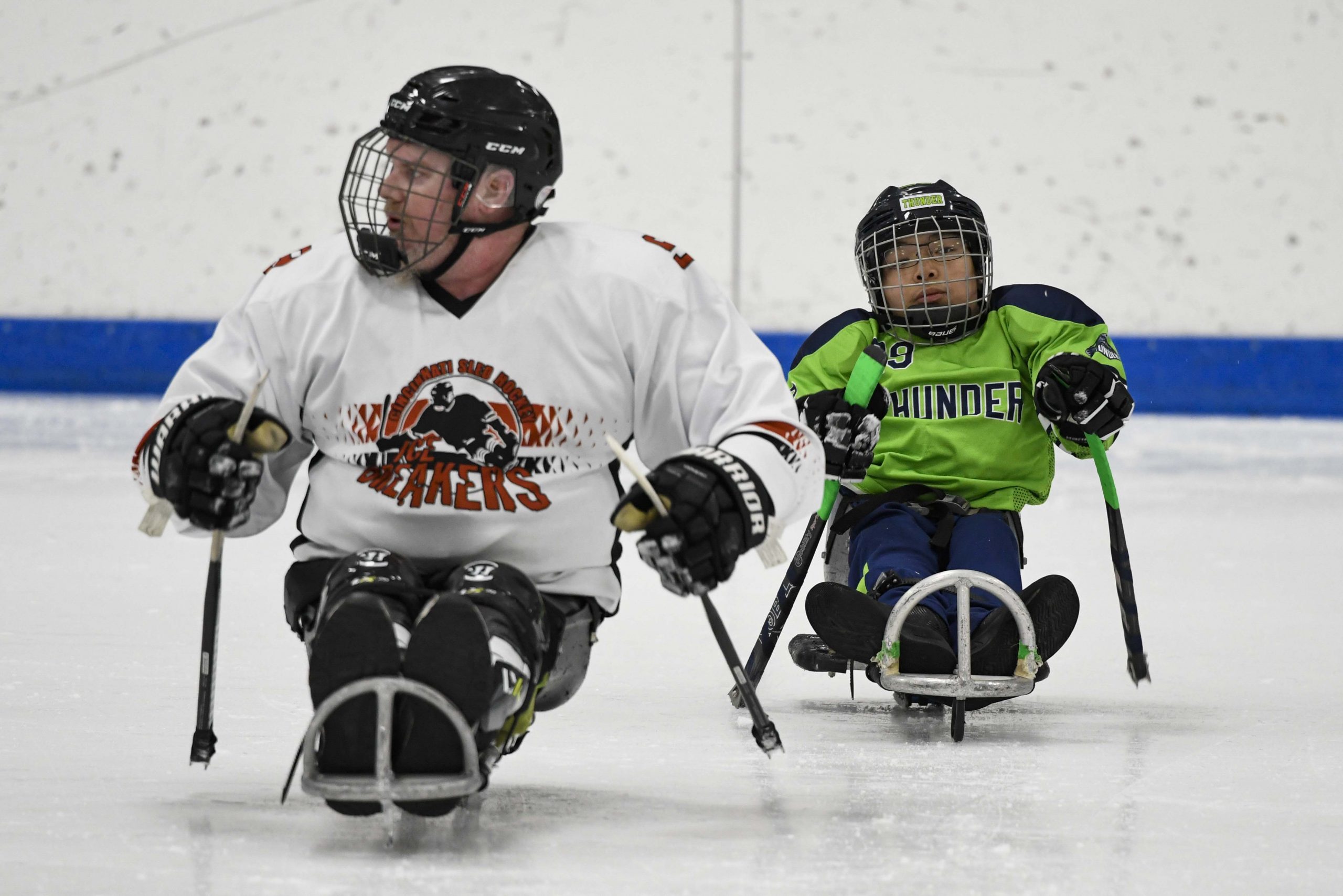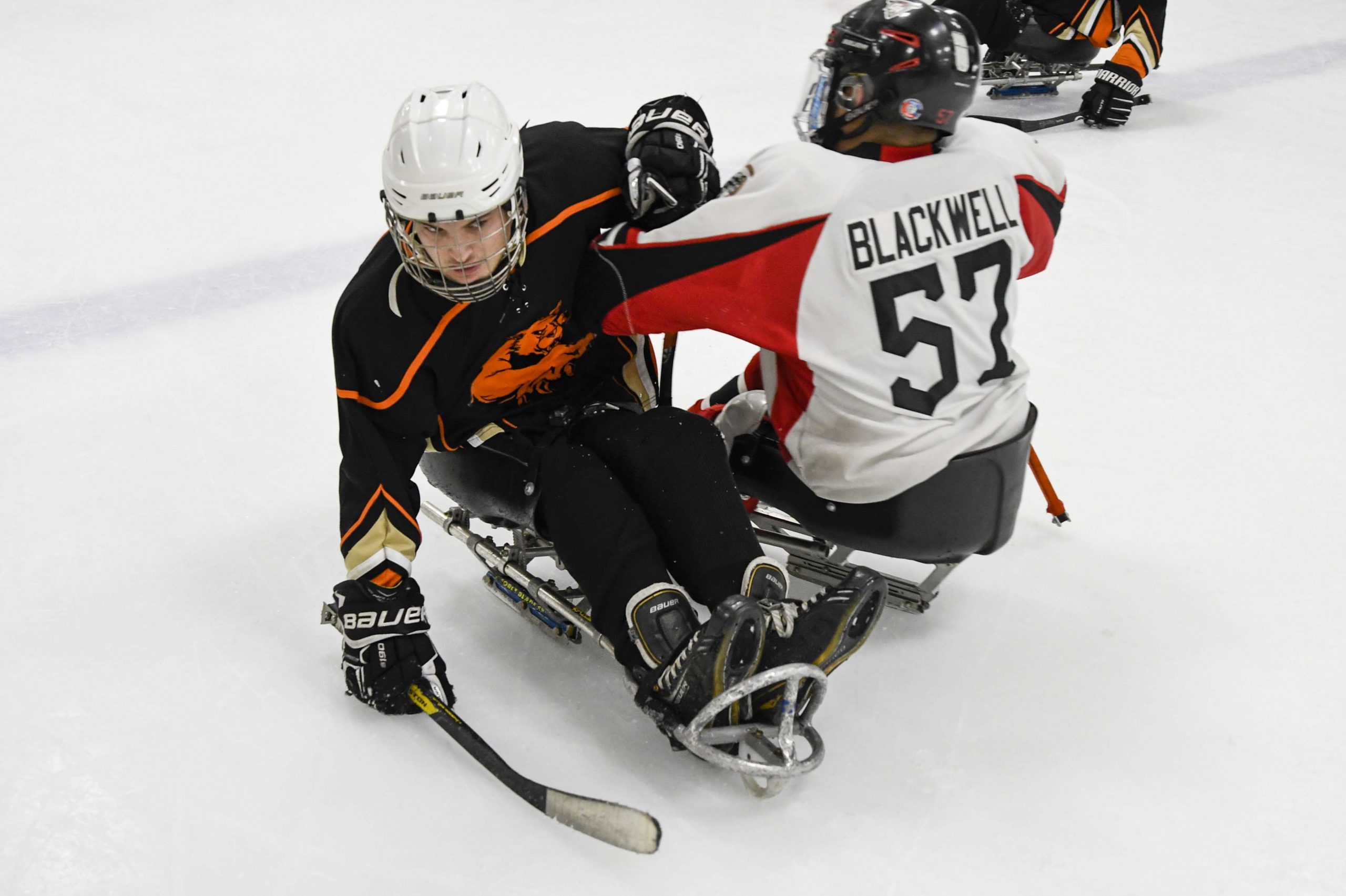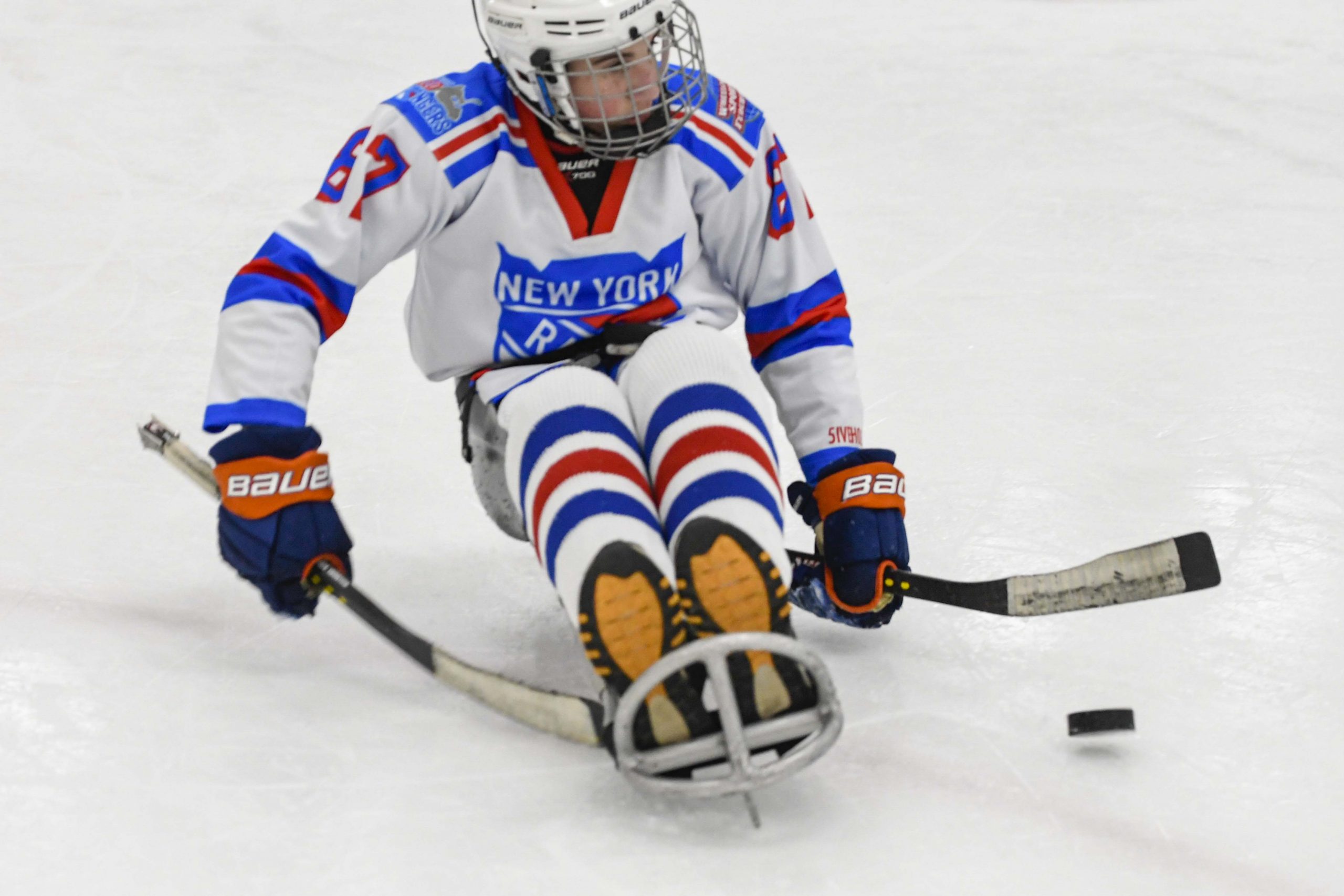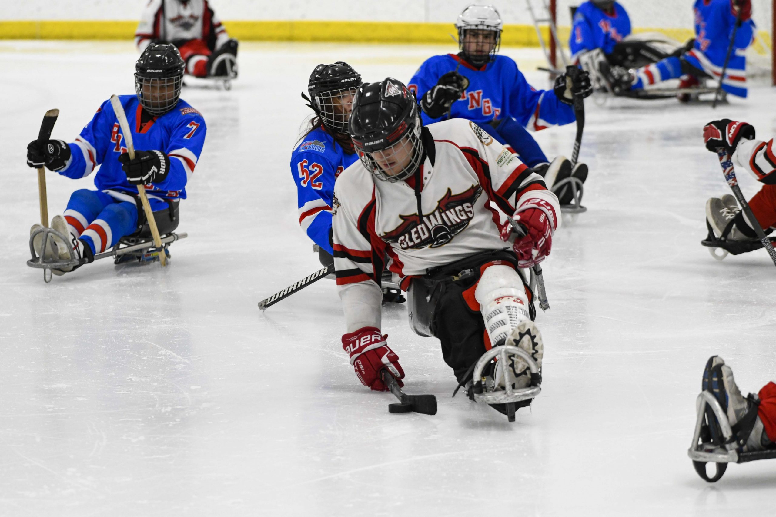 Sled hockey is an adaptation of ice hockey designed for players who have a physical disability. To play sled hockey, the only requirement is that you have a disability that prohibits you from playing stand-up hockey.