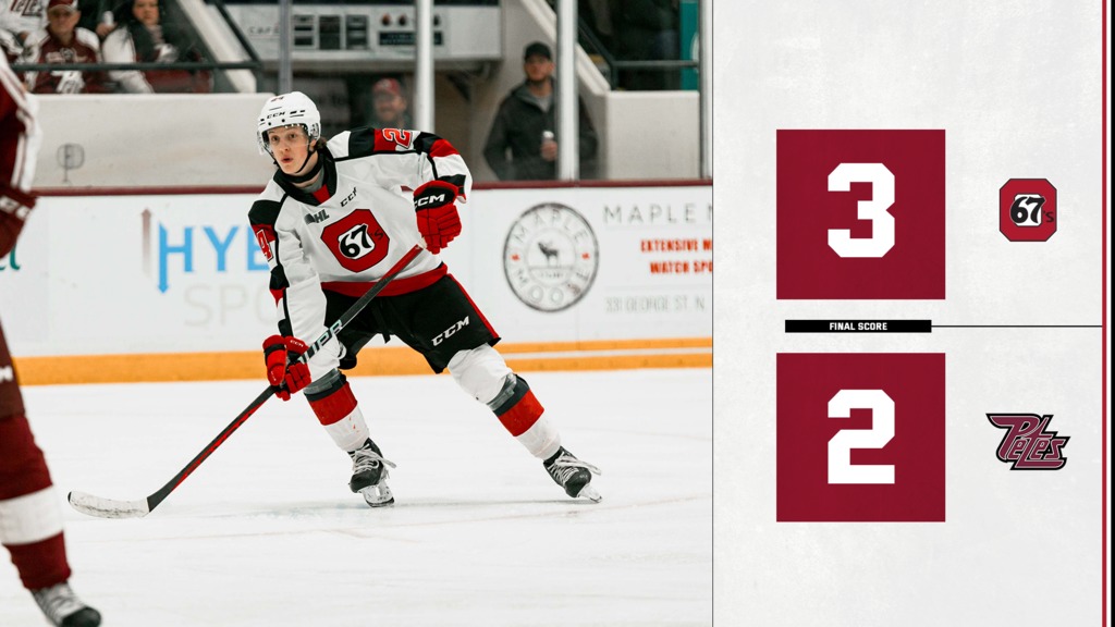 The Ottawa 67’s didn’t get their first lead until 1:36 to play, but it was more than enough to beat the Peterborough Petes on the road, Thursday night.