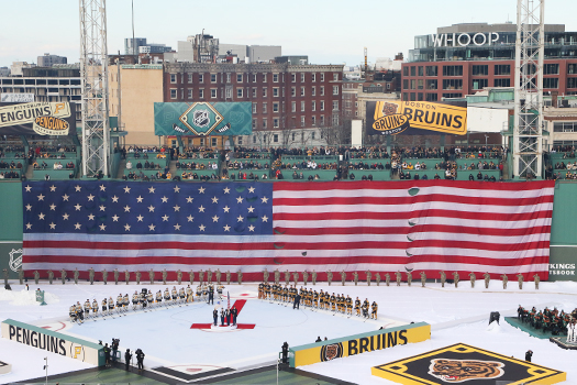 A giant American flag is draped over the Left Field Green Monster wall during the National Anthem Published January 2, 2023 at 525 × 350 in A giant American flag is draped over the Left Field Green Monster wall during the National Anthem A giant American flag is draped over the Left Field Green Monster wall during the National Anthem – Photo by Jack Lima