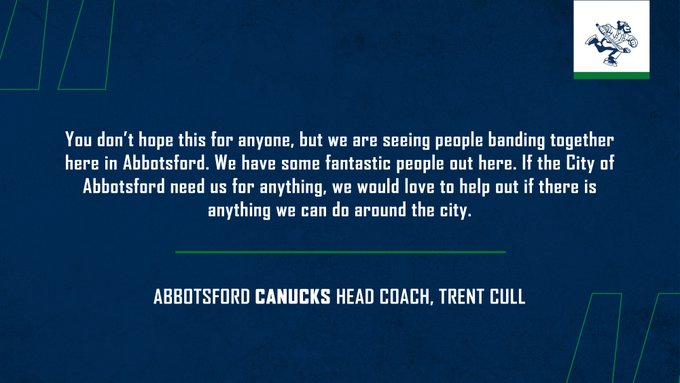 During the nasty weather event water levels rose around the city due to a breached dike and three players had to be evacuated from their hotel. The Canucks have offered to help the City of Abbotsford recover from the disastrous flood in which people have lost their homes and livestock.