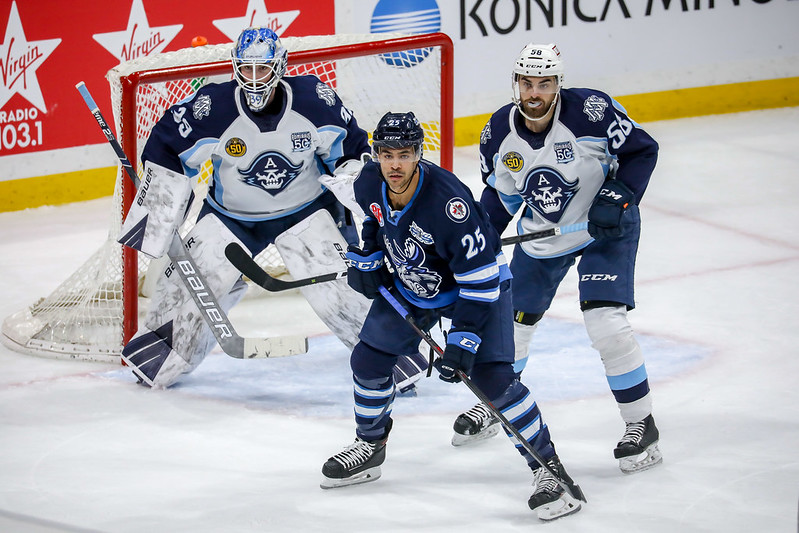 The Admirals took a 2-0 lead when the trio of Michael McCarron, Frederick Gaudreau and Yakov Trenin worked together to get the tally. McCarron chased Moose defenseman Leon Gawanke behind Manitoba’s net and bumped him off the puck. Gaudreau quickly passed the puck to Trenin in the right circle and Trenin snapped a shot into the net at 5:19 for his 16th goal of the season.