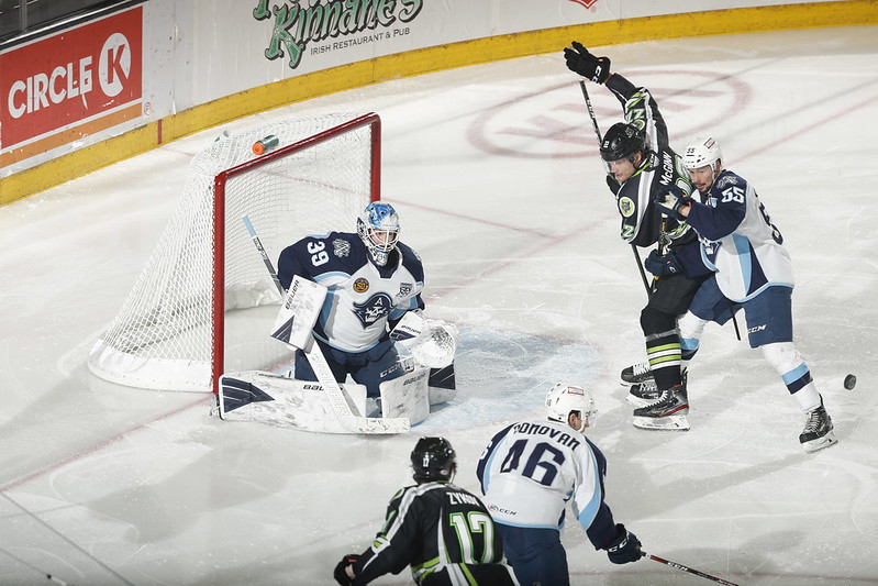 Chicago got on the board at 9:00 of the third period. Gage Quinney, standing near the crease, slapped a loose puck into the net for his 14th goal of the season to make the score 2-1.