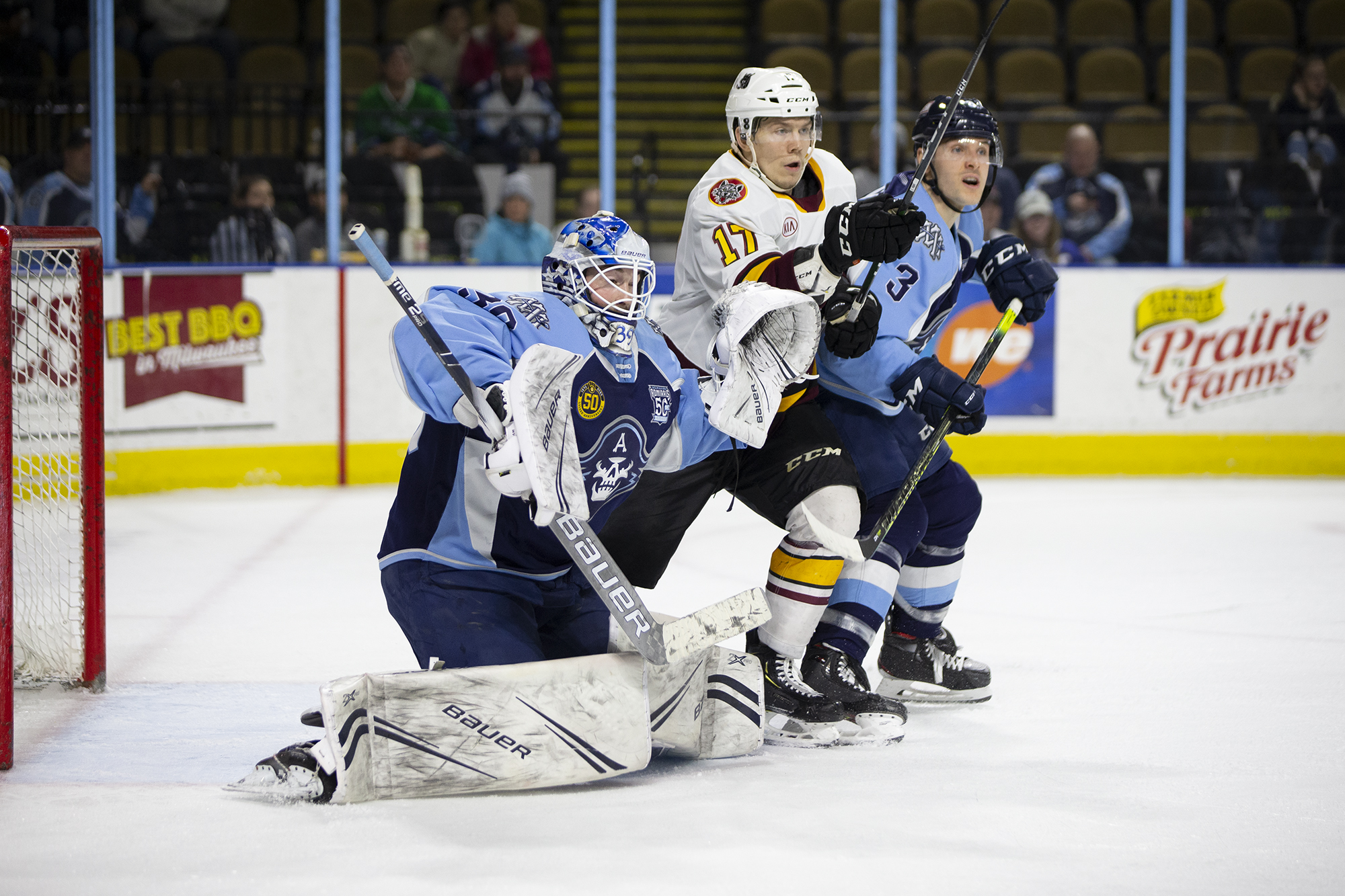 Milwaukee, WI—Netminder Connor Ingram stopped 30 shots in regulation and OT and then all three Chicago shooters to guide the Admirals to a 3-2 win over the Wolves on Wednesday night at Panther Arena.