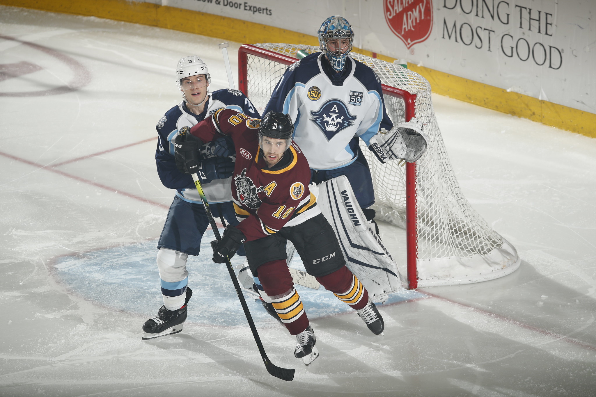 The Admirals tied the score with a power play goal at 8:34 of the third period. Alex Carrier fed a pass to Gaudreau in the left circle. Gaudreau’s one-timer was stopped but Cole Schneider slid the rebound into the goal for his tenth marker of the season. Schneider’s fifth power play goal was assisted by Gaudreau and Carrier.