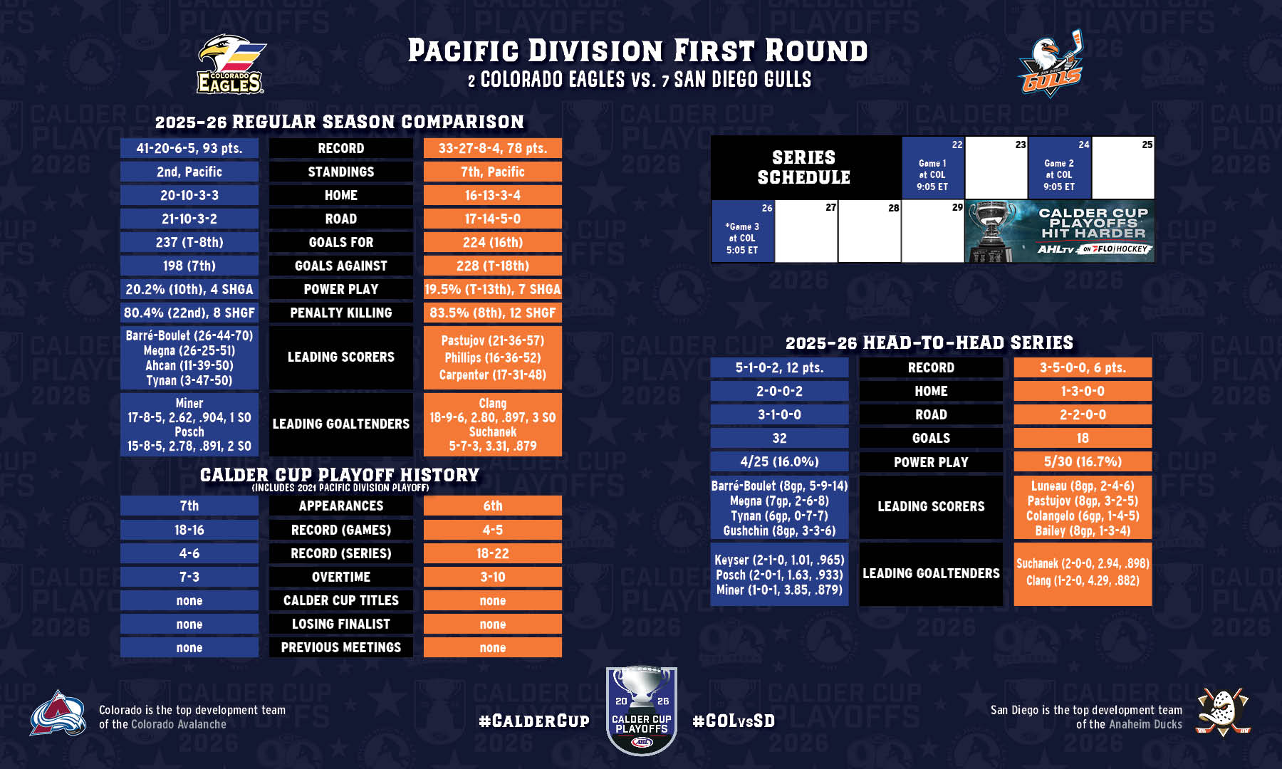 San Diego is in Colorado for Game 1 of their Pacific Division first-round series tonight. The Gulls are back in the postseason for the first time since 2022, when they were swept by Ontario in the first round.