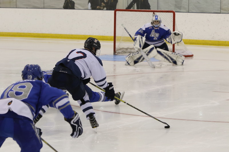 In the third period, Air Force continued their scoring spree at 2:08 and 4:40 with Nicholas Hastings netting both goals. Guttierez had the assist on the first, while Reule and Anderson assisted on Hastings’ second goal. Both goals came on the power play. Lucas Smith closed out the scoring for Air Force with assists from Jed Cutter and Luca Pisani. The Falcons finished with 59 shots on goal, while Navy finished with 13 shots on goal.