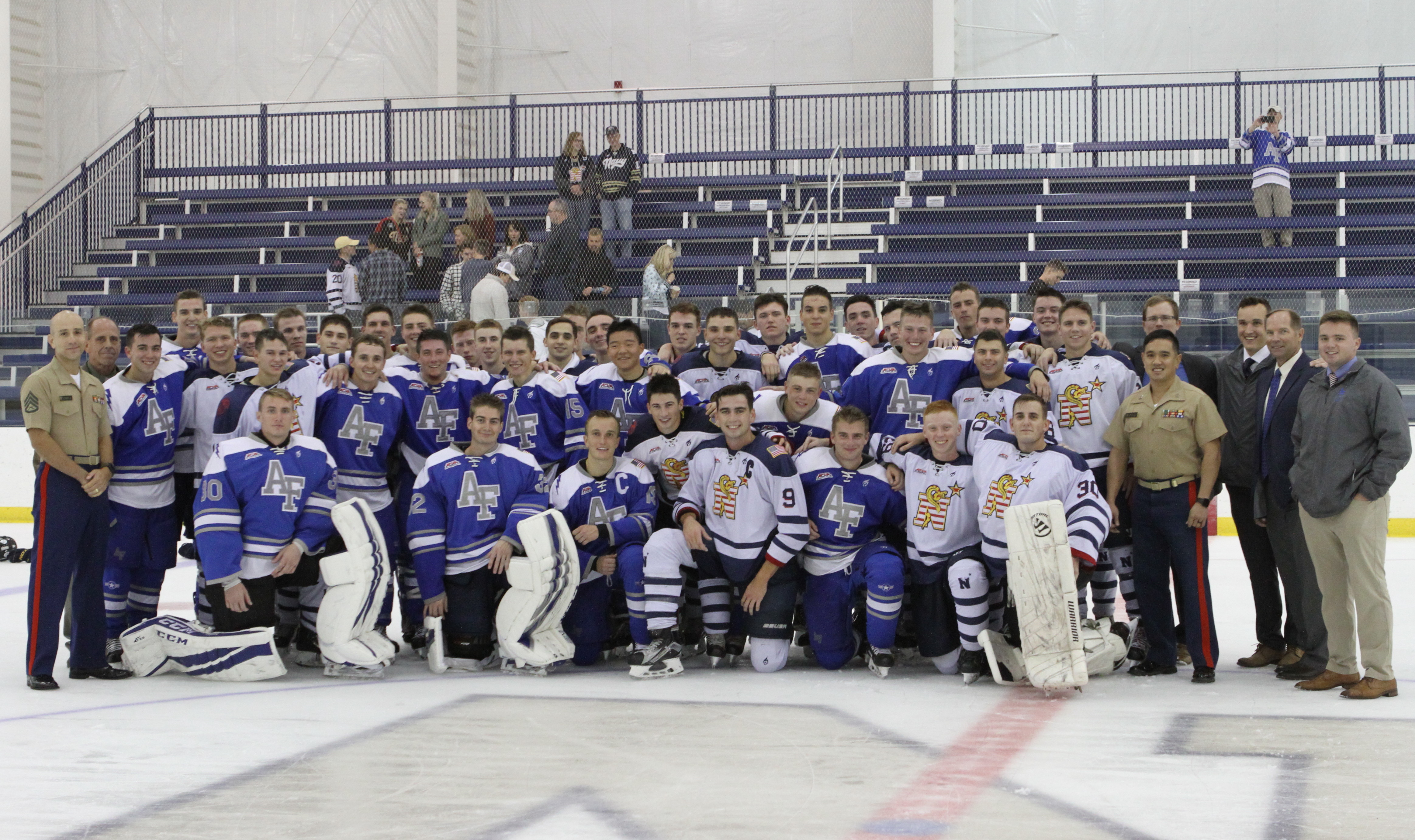 Skippy Sheldon of Navy was in net, while Mark Anarumo was in goal for Air Force. Air Force would go on to play Army the following day, while Navy would have to wait another day to play Army.