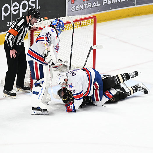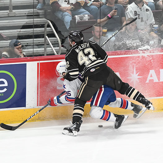 Aaron Ness, back in the Bears lineup after missing the previous four games due to injury, scored on a back-door tap-in with 10:18 left in regulation for Hershey’s only offense. It was the first goal in 45 career Calder Cup Playoff contests for Ness.