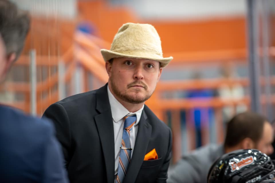 “My grandfather William Edward McCreary passed away on November 25th, just two days into our streak. At his celebration of life I was gifted a hat he wore when he played for the Guelph Biltmore Mad Hatters. He went on to coach for the St. Louis Blues and Vancouver Canucks, as well as having a lengthy playing career. Nine games later the Danbury Hat Tricks are setting records, and I am wearing the hat he wore. This is my first year coaching professionally. Prior to this I’ve been a player/assistant coach in the SPHL for the Huntsville Havoc, the hockey director for the New Jersey colonials last season, as well as coach for Selects Hockey in the spring and summer working with players who have gone on to play division I, Major Junior, and internationally with US and Canadian National teams.