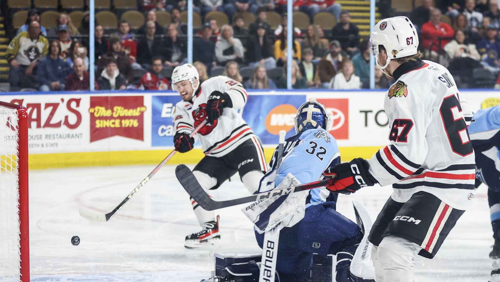 The IceHogs pounced on the Admirals in the 1st period with two goals from Joey Anderson. Just 1:09 into the game, Samuel Savoie stole the puck in the offensive zone and slid a pass across the crease for Anderson to tap in.
