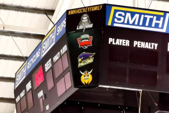 There was good news in Milton Keynes for Thunder fans as Planet Ice put together the finishing touches to the over ice scoreboard. Many rinks only include one resident team in the building design, however in MK the scoreboard now includes the logos of the Lightning, Thunder, Falcons and Storm.
