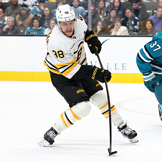 Bruins forward David Pastmak (88) fires a shot on goal in front of defenfeman Tim Liljegren (37) – Photo by Jack Lima