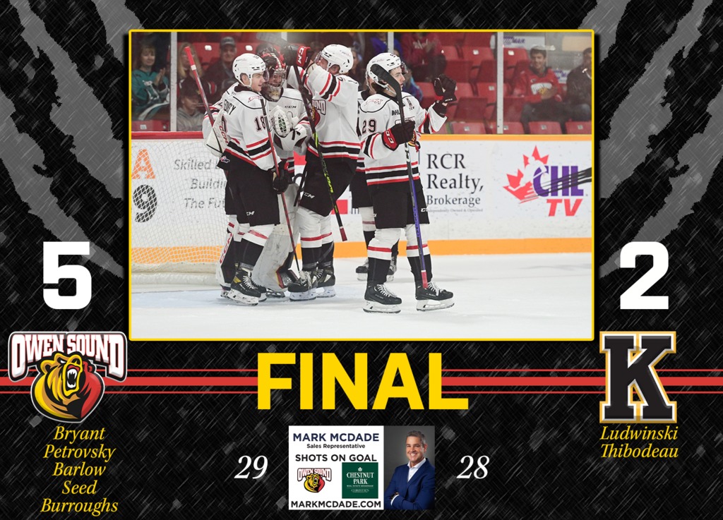 Owen Sound would cruise to the finish line, though a slight speed wobble came in the early part of period three, when Kingston cut the lead back to just a pair, but with five minutes to play Ethan Burroughs sealed the game, with an absolute snipe from the slot hashmarks to make it a 5-2 game.