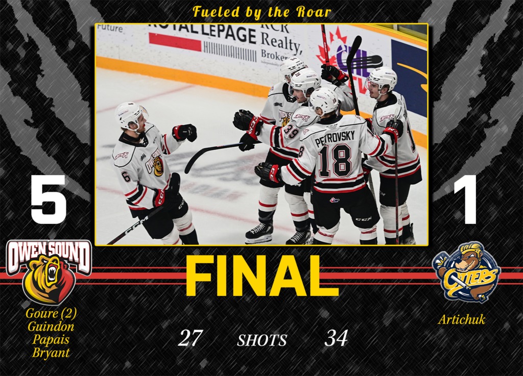 Deni Goure and Matthew Papais each tallied a three point night, leading the Owen Sound Attack to a big 5-1 win over the Erie Otters Friday night down in Erie. The victory stretched Owen Sound’s current winning streak to four games, with three of those coming against Midwest division rivals.