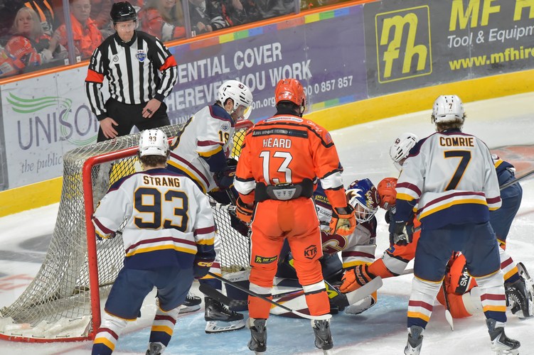 As the clock ticked past the midway point, the breakthrough finally came. At 51:25, Mikko Juusola battled brilliantly in the corner despite heavy attention and delivered a sublime feed into the slot. From one knee, Brett Ritchie rifled home the equaliser to spark bedlam in the Arena.