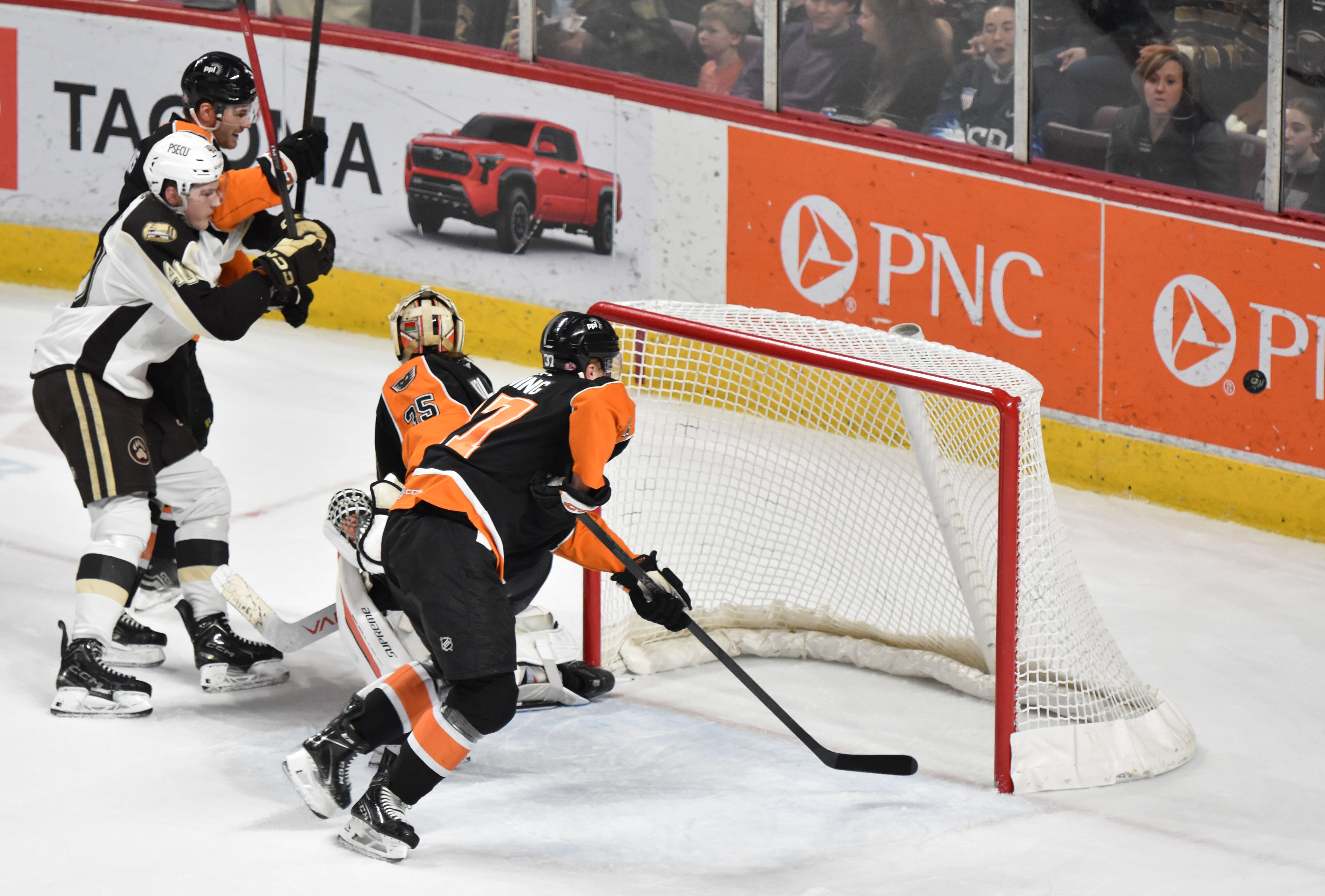 Hershey, PA – The Lehigh Valley Phantoms put it all together in an impresive 4-1 win on Friday night in Chocolatetown in the first of a two-game weekend series. Alex Bump (8th) opened the scoring in just his third game back from his return from injury. Aleksei Kolosov (31/32) was excellent. But it was a combined team effort filled with winning board battles and getting to pucks first that drove John Snowden’s contingent to its first victory in Hershey this season.