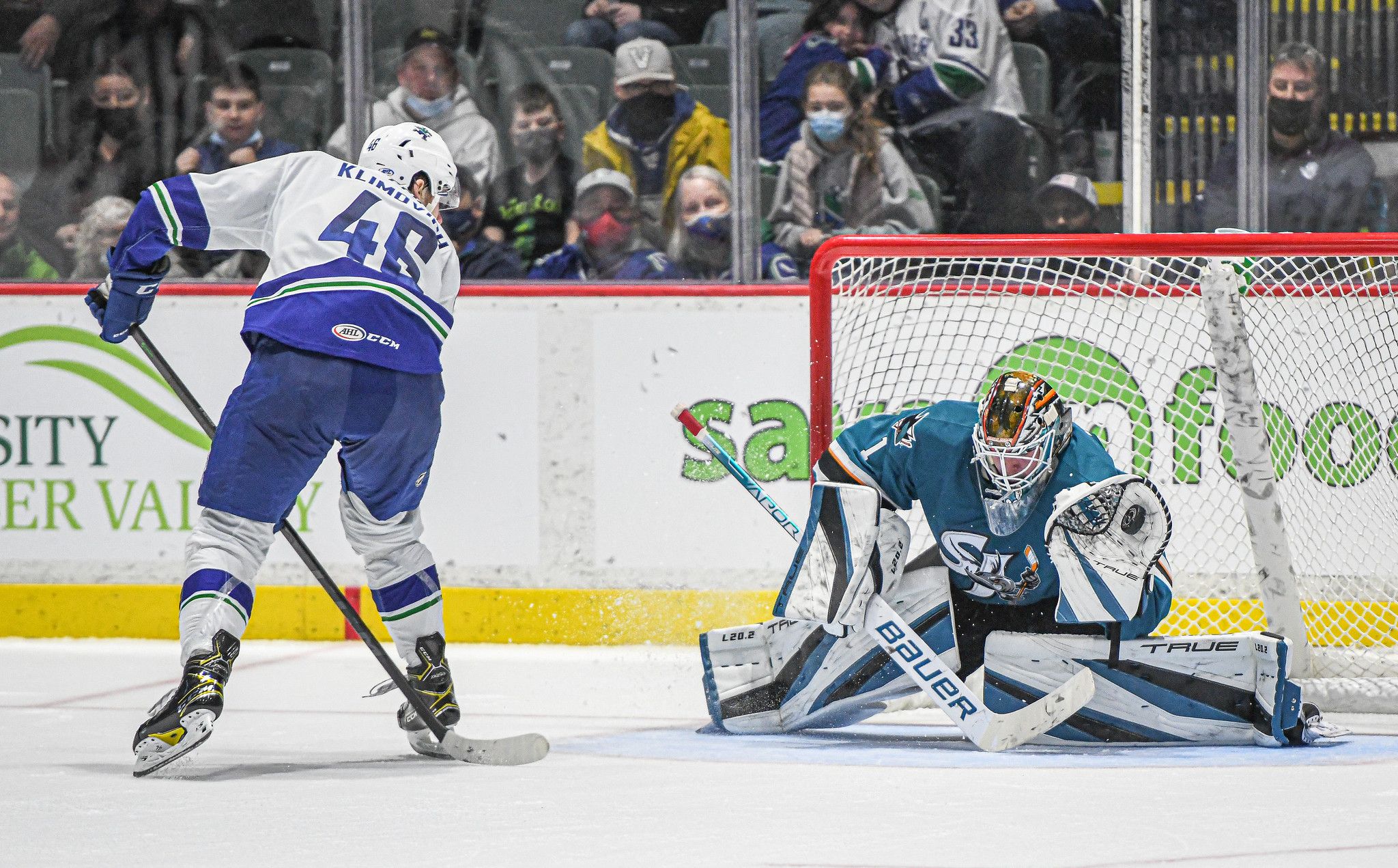 Abbotsford opened the scoring early in the second period when Will Lockwood forced a turnover and fed a streaking Wouters in front of the net. Wouters slapped it past Barracuda goalie, Alexi Melnichuk, to make it 1-0 for the Canucks. The marker was the first of the season for the former Saskatoon Blade star and his first career goal in the American Hockey League.