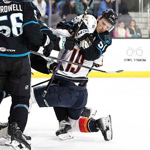 In the second, the Barracuda waited just 2:21 to level the score as Todd found Scott Sabourin (12) in the slot. Two minutes and five seconds later, on the power play, Todd (16) would go five hole on Chris Driedger to give the Barracuda a 3-2 lead. After the Barracuda were called for a minor penalty, Logan Morrison (11) beat Chrona on the short side at 9:05 to level the score at 3-3.