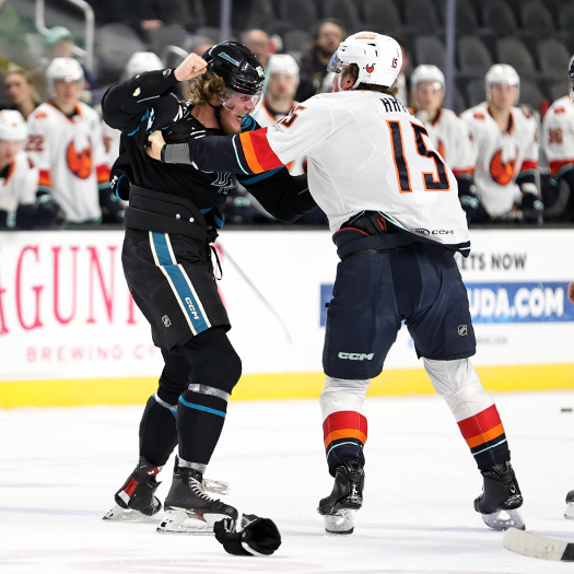 3:28 into the first the Firebirds jumped out to a 1-0 lead when Andrew Poturalski (11) ripped in his team-leading ninth goal of the year on the power play, and then, Max McCormick (24) gave Coachella Valley a 2-0 lead when he beat Magnus Chrona from in tight at 8:04. On its second man advantage of the period, the Barracuda managed to cut the lead back down to one as Kyle Rau (6) directed a rebound in from just off the crease at 9:40.
