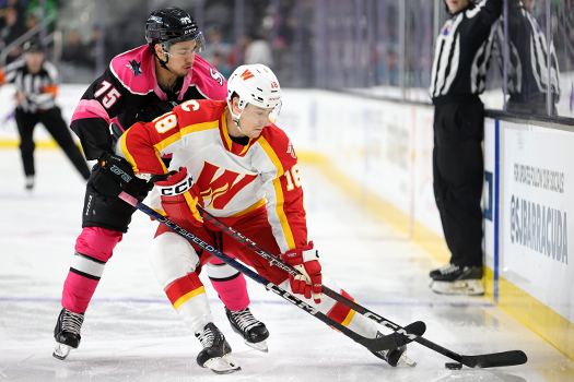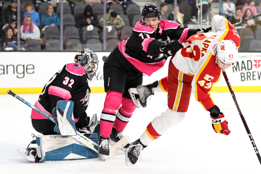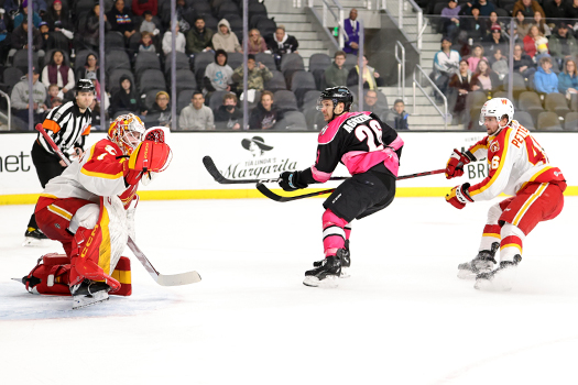 In overtime, the Barracuda would take a penalty 25 seconds into the extra session but would kill it off, thanks to multiple timely blocks by defenseman Patrick Holway. After a scoreless OT, the Barracuda would fall in the shootout after the Wranglers scored on all three chances. Matthew Phillips (25) sealed it for Calgary with the third goal in the shootout.