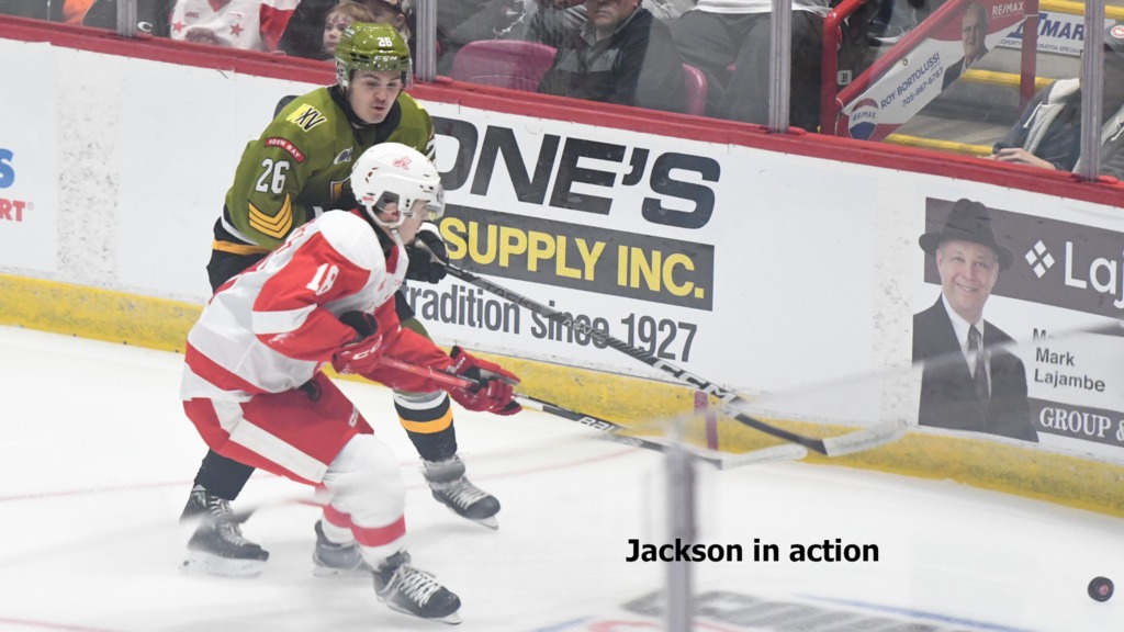 Jackson struck again at 16:34, going to the left of the net and taking a pass from Petrov before shoveling the puck under Schenkel with a deft deke for the eventual winner. Justin Ertel had the other assist for his first OHL point after joining the Troops from Cornell University.
