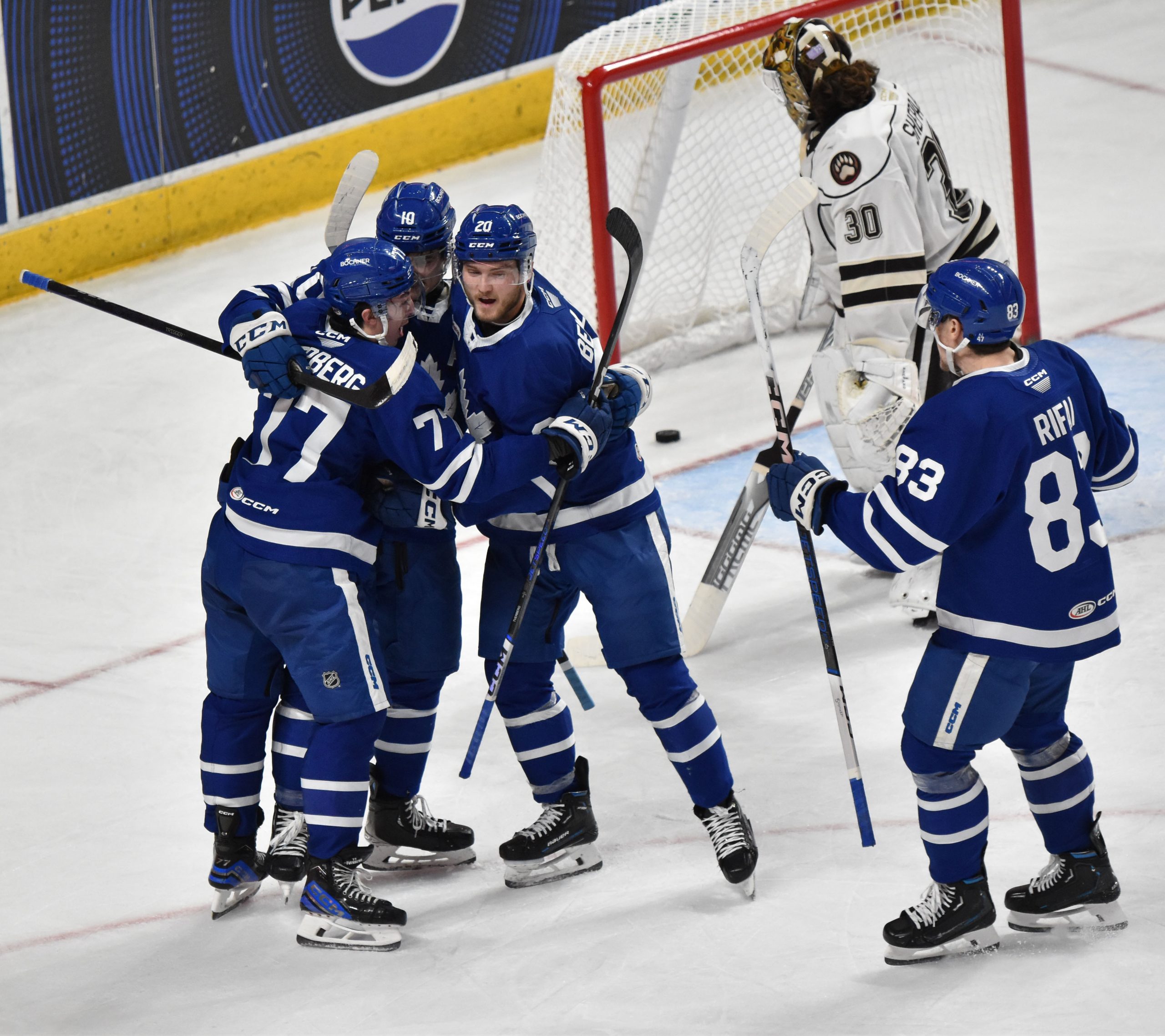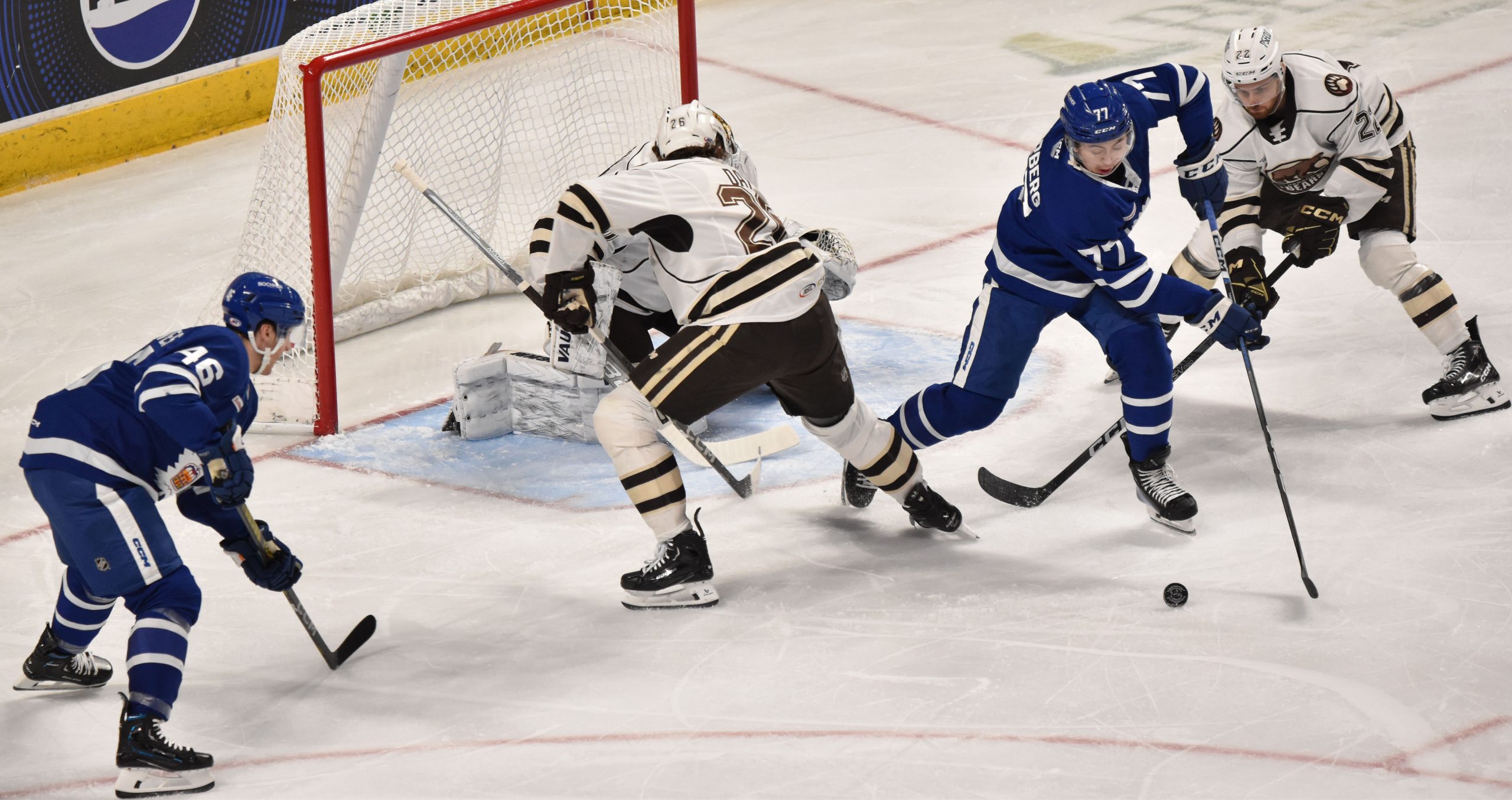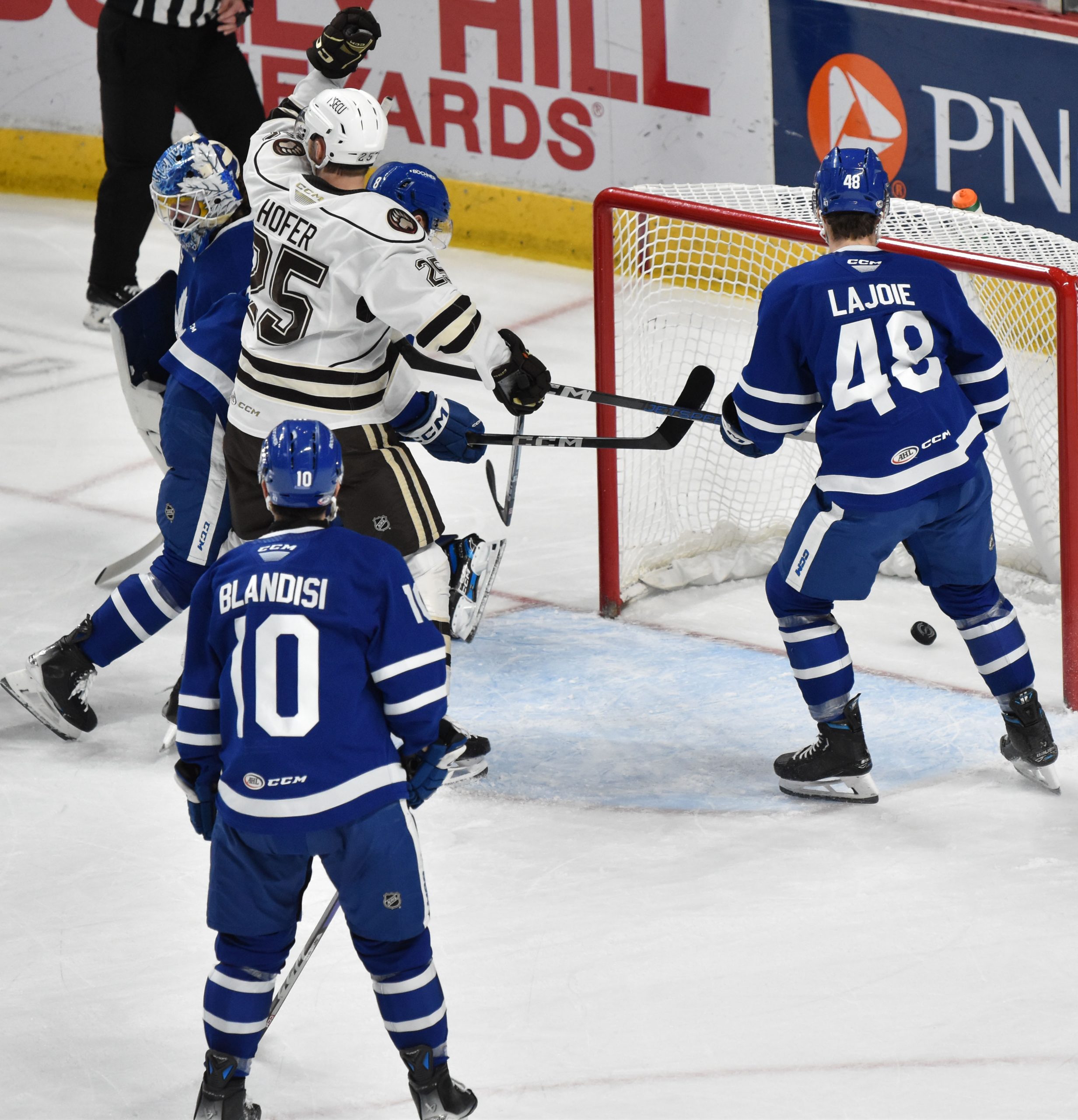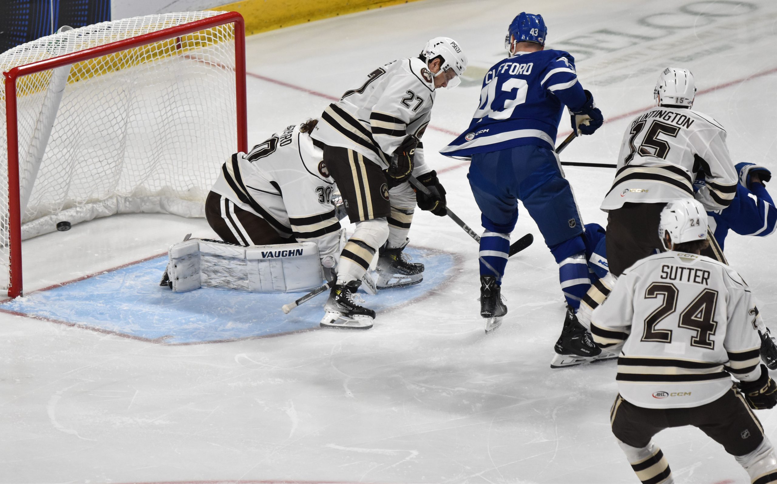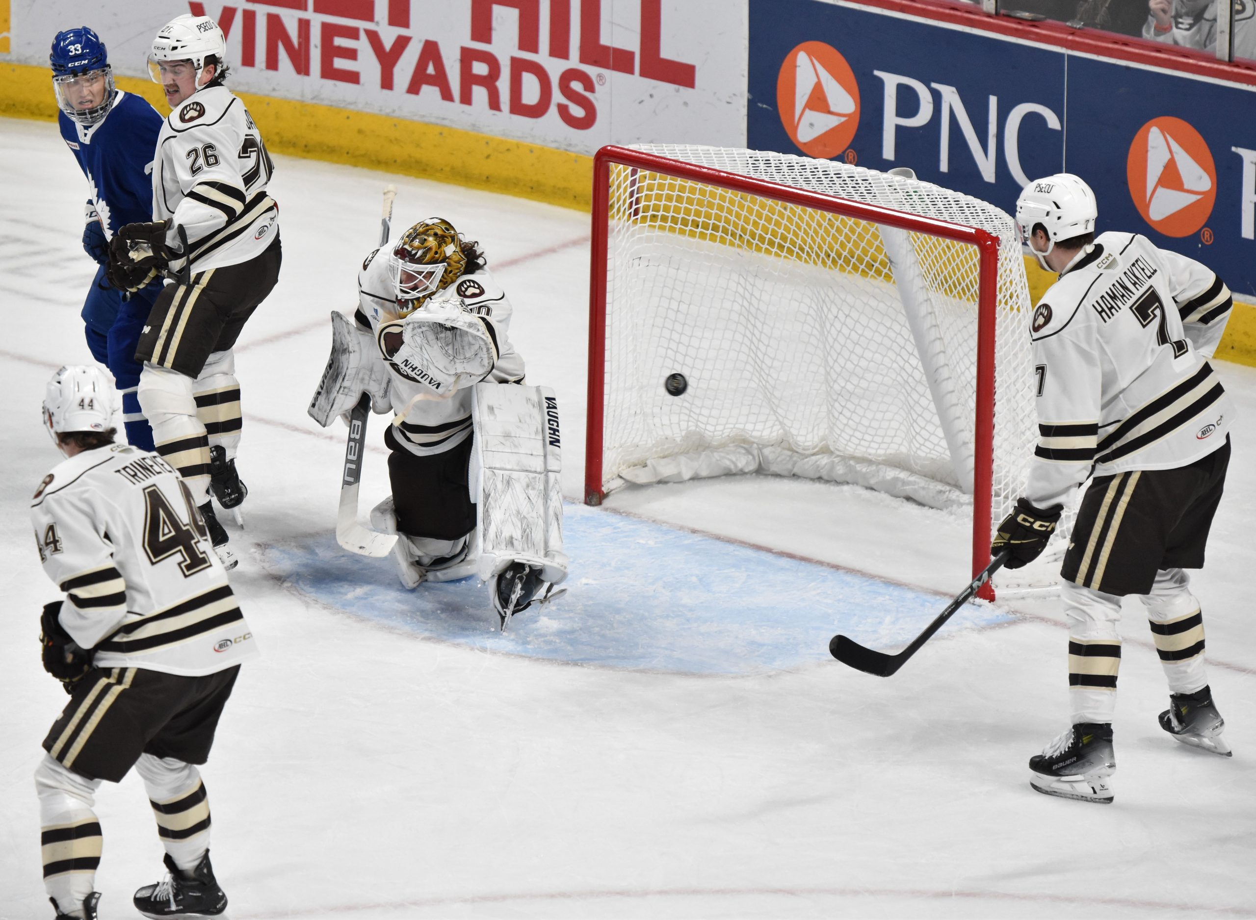 Toronto knotted the game at 10:02 of the third period with a power-play goal from Joseph Blandisi after the Marlies had kept the puck in the Hershey zone and foiled had foiled a handful of chances with several scrambling saves.