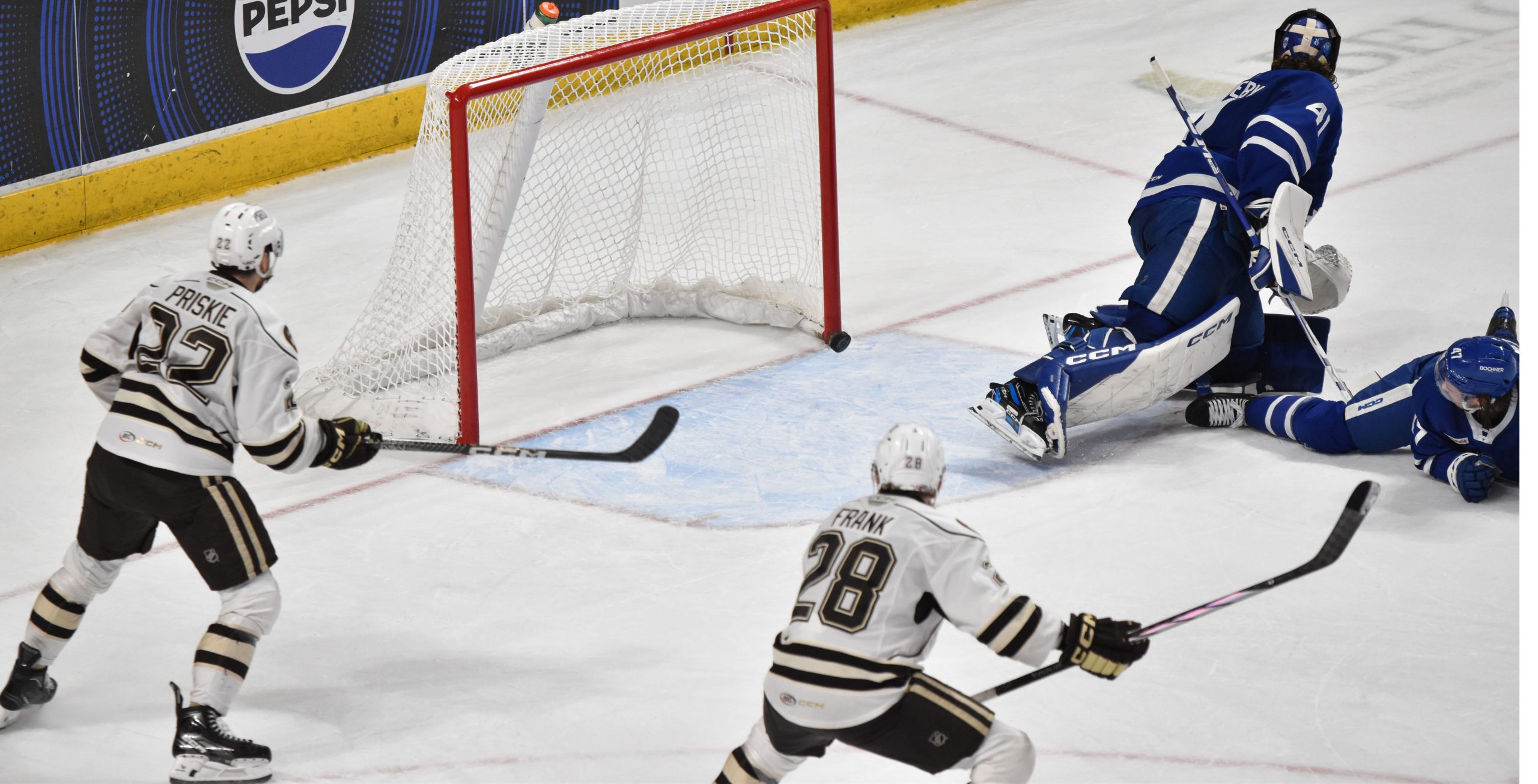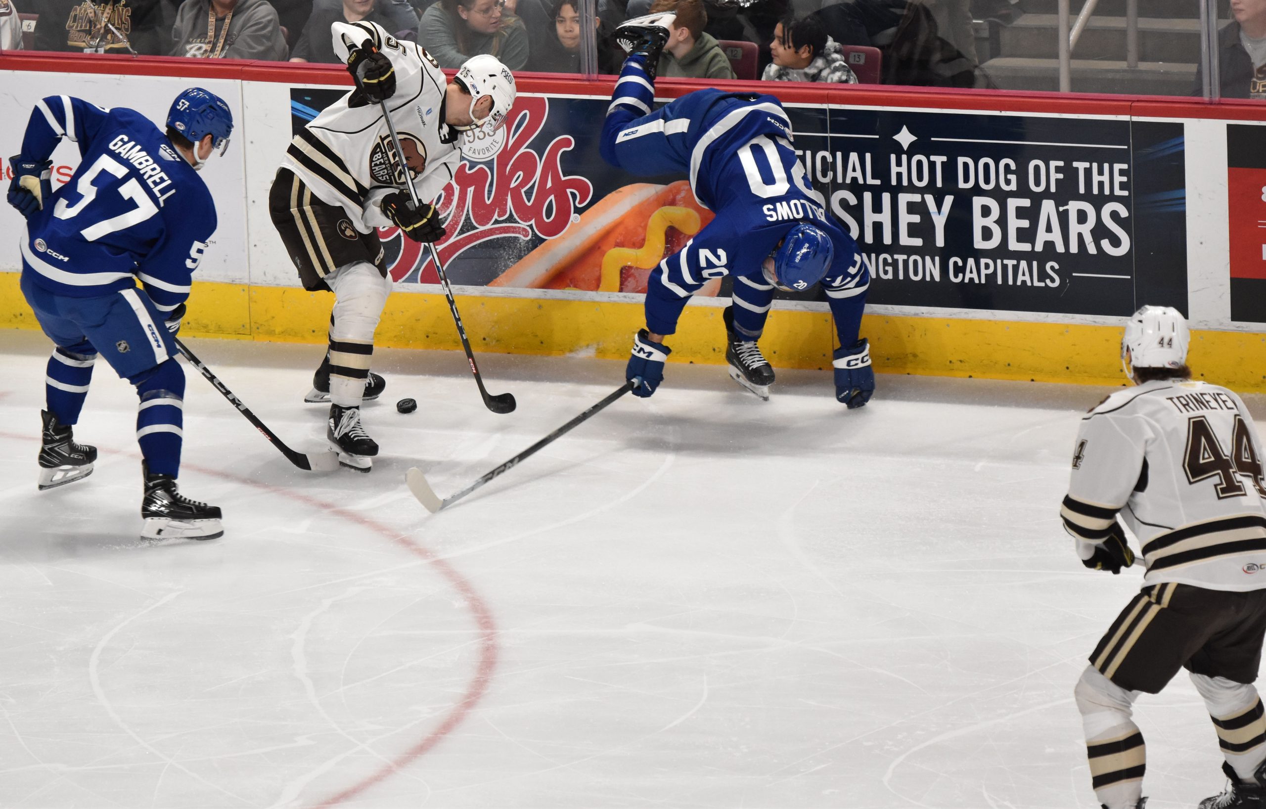 The Bears took the game in overtime when Priskie raced down an errant Toronto pass in the Hershey zone and muscled his way with the puck into the offensive zone, and was directed back into the slot, where Snively snapped a shot past Hildeby at the 4:58 mark to win it for Hershey with his ninth of the season.