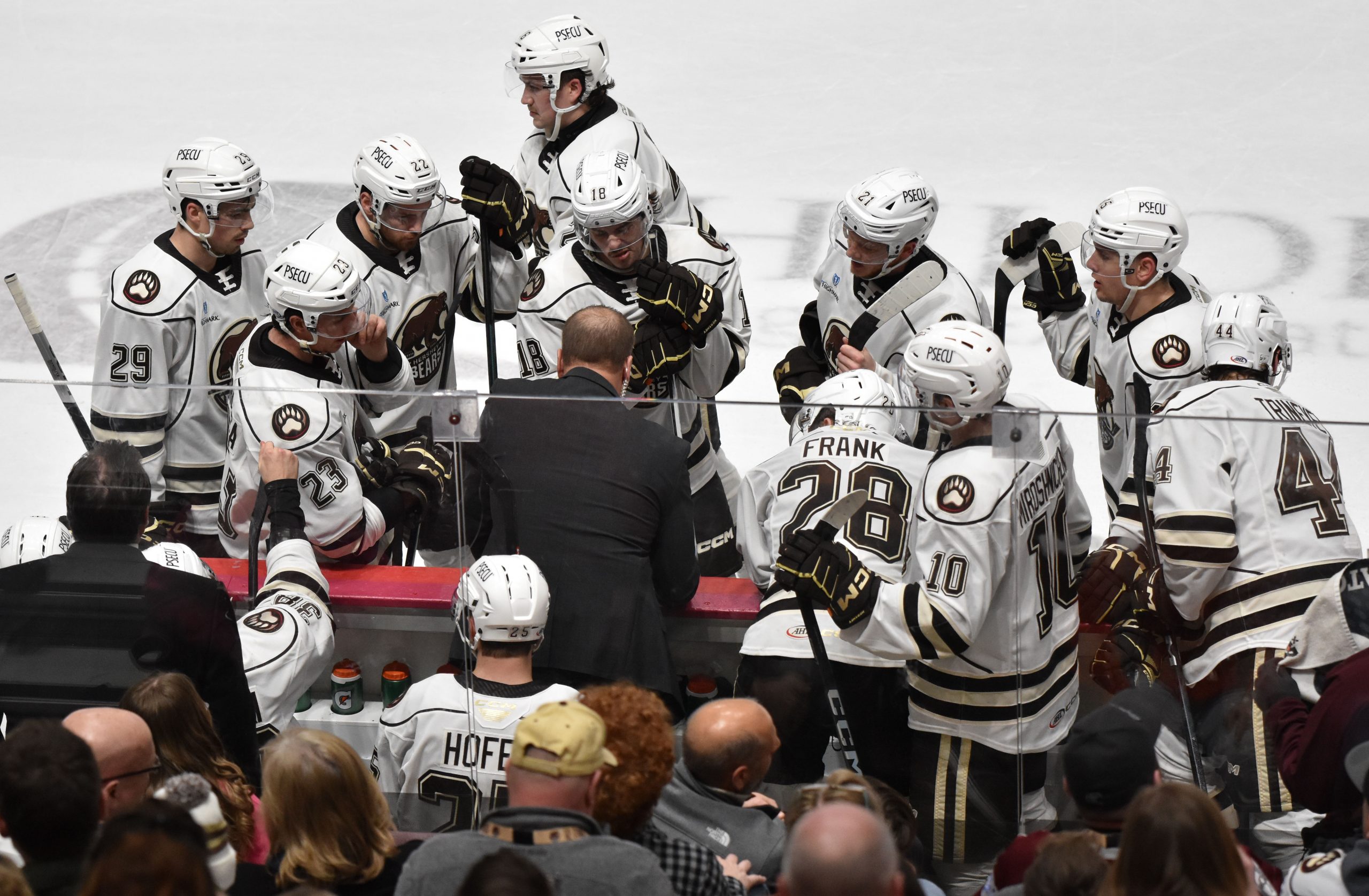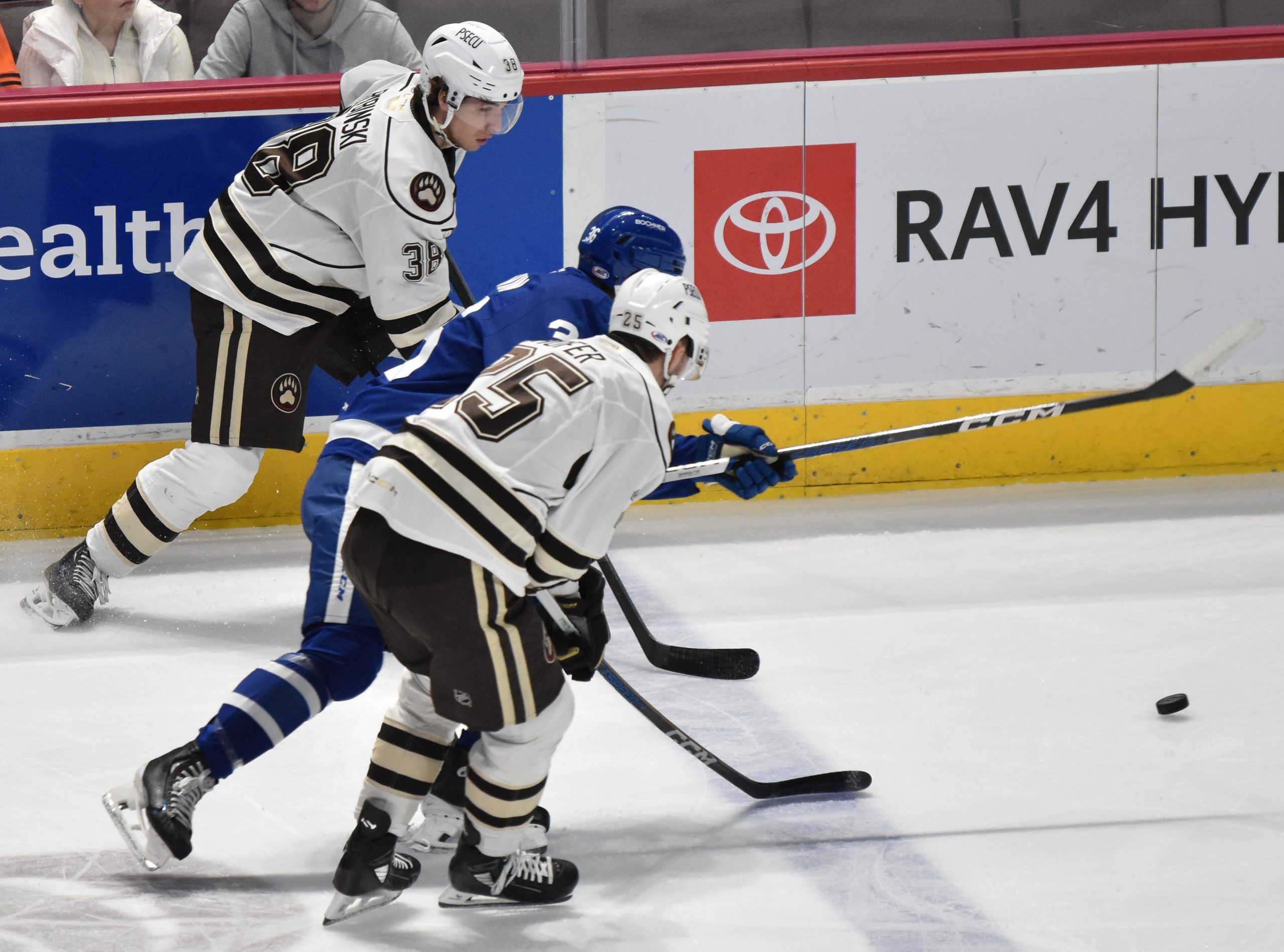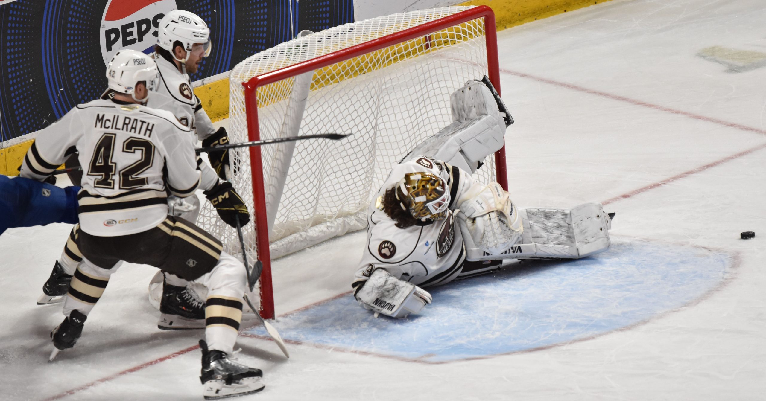 The Bears opened the scoring when Chase Priskie beat Dennis Hildeby at 19:27 of the first period with a sharp-angle shot from beneath the left circle. Henrik Rybinski and Riley Sutter assisted on the goal.