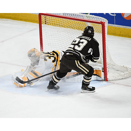 Through the first two periods of the game, both Hunter Shepard and Keyser dueled in net for Hershey and Providence, respectively, as the Bears outshot the Bruins 16-9. After 40 minutes, Shepard had turned aside all nine shots he had faced, including a breakaway stop by Eduards Tralmaks at 16:46 of the second frame.