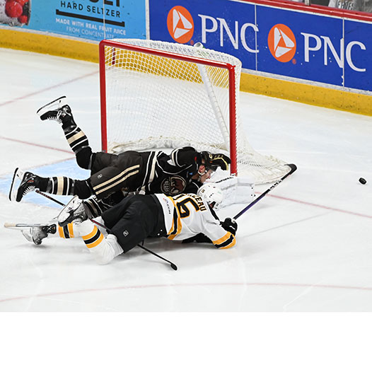 Hershey remains one point ahead of the Bruins for first place in the Atlantic Division, with one more game played. Hershey is now 1-2-0-0 against Providence this season, with two games upcoming next weekend, and three in total remaining between the division foes.