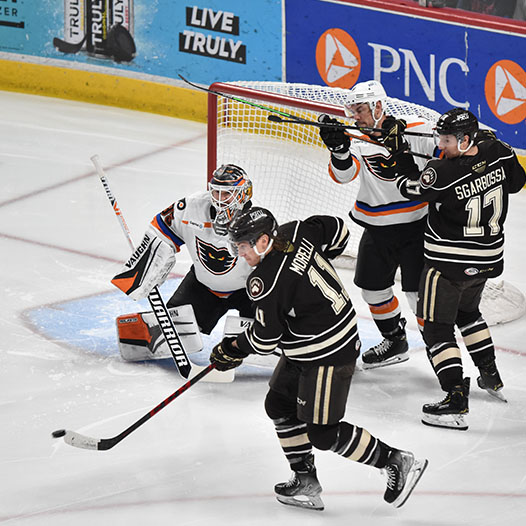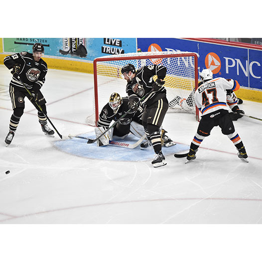Pat Nagle stopped all 42 Hershey shots thrown his way to help the Lehigh Valley Phantoms blank the Hershey Bears, 2-0, on Saturday night at GIANT Center. The loss dropped Hershey’s record to 34-31-6-4. The team concludes the regular season tomorrow versus Syracuse at 5 p.m.