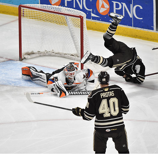 The game remained scoreless through 40 minutes despite Hershey outshooting the Phantoms 29-11 through two periods.