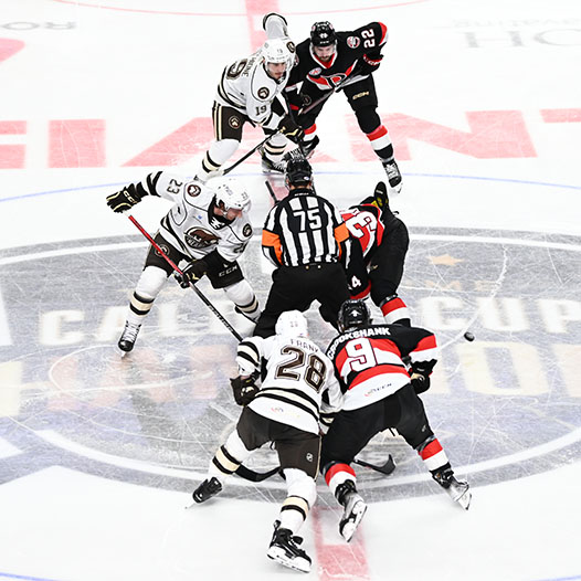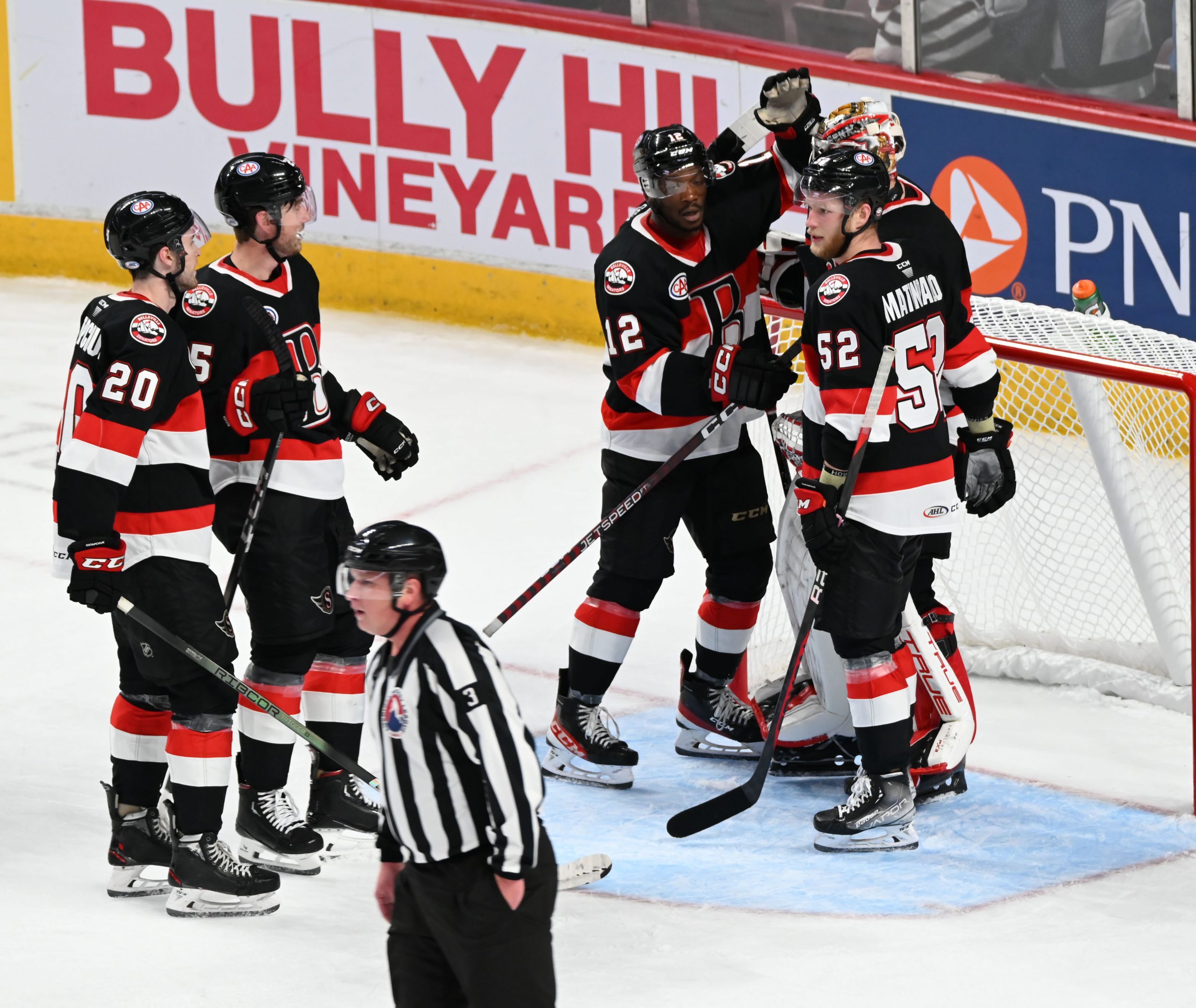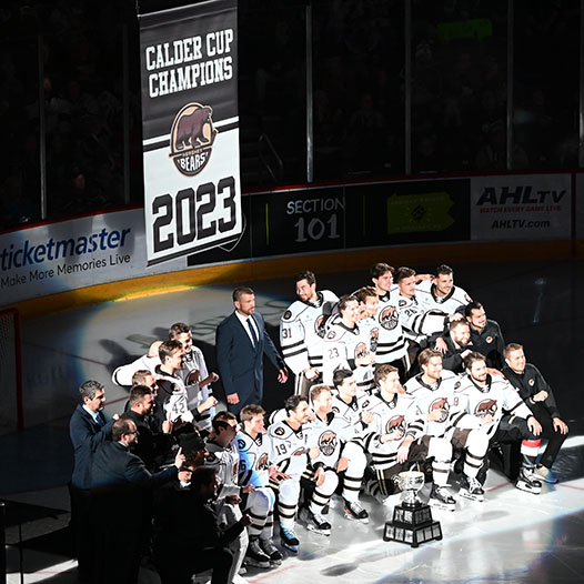 Prior to the game, the team commemorated their 2023 Calder Cup championship with a ring presentation ceremony and by raising their 12th Calder Cup banner to the GIANT Center rafters.