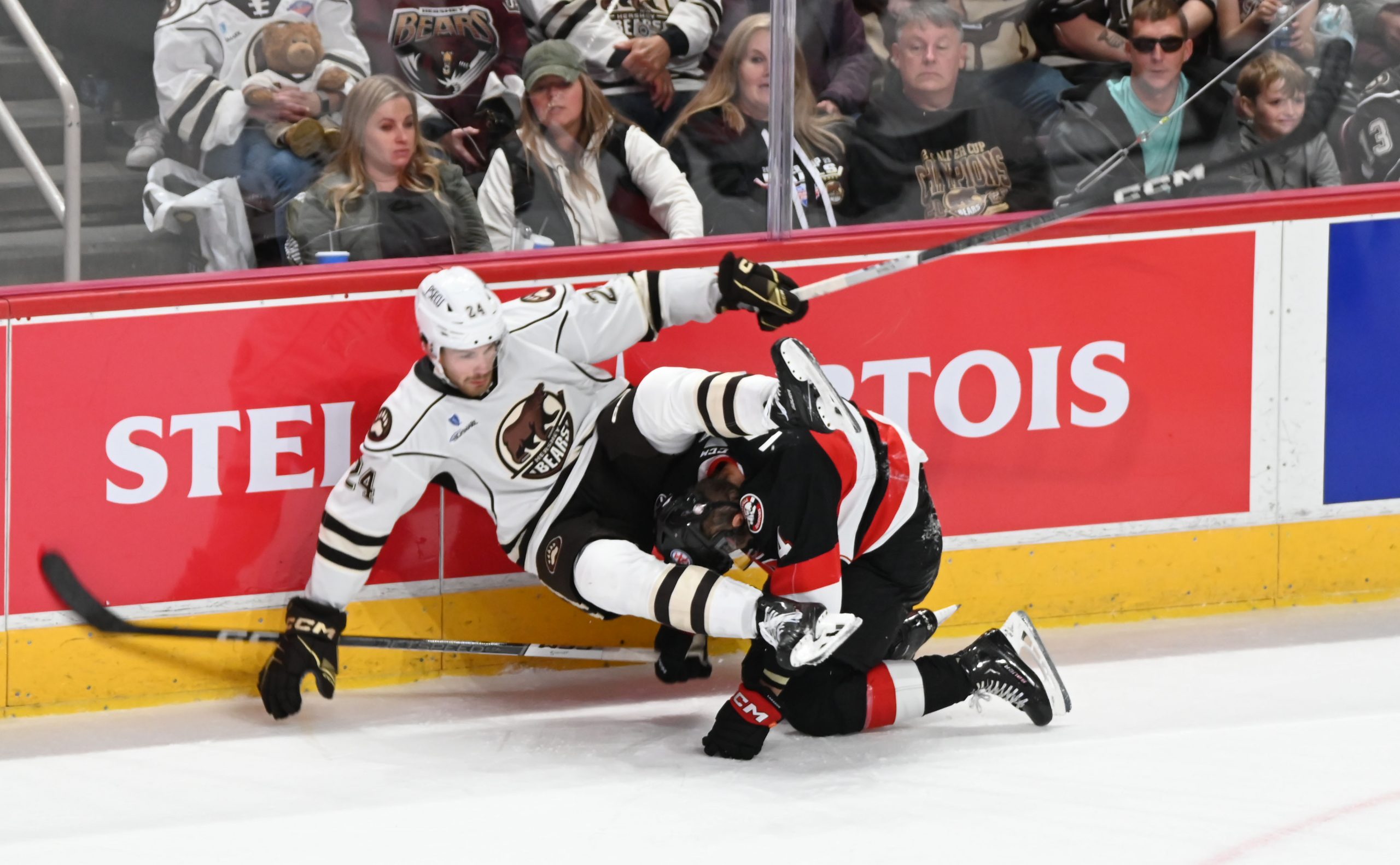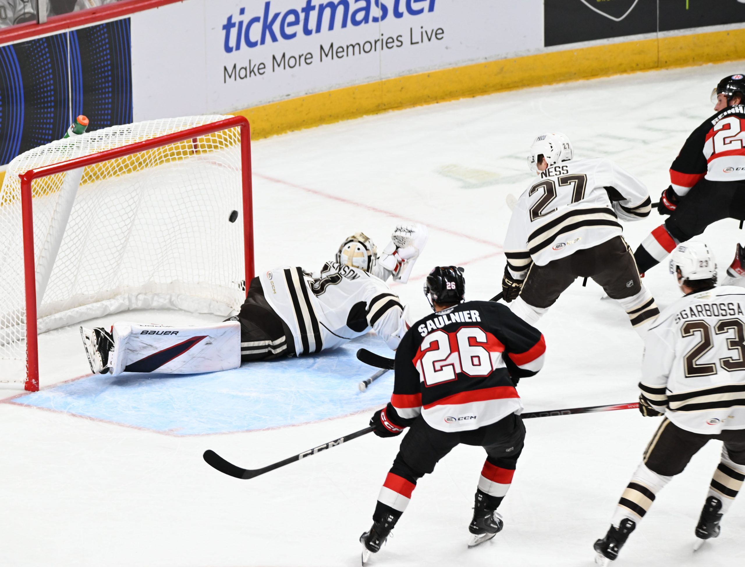 Shots finished 30-20 in favor of the Bears. Stevenson took the loss with a 17-for-19 effort; Sogaard stopped all 30 shots he faced in the win for Belleville. Hershey was 0-for-3 on the power play; the Senators went 1-for-4 with the man advantage.