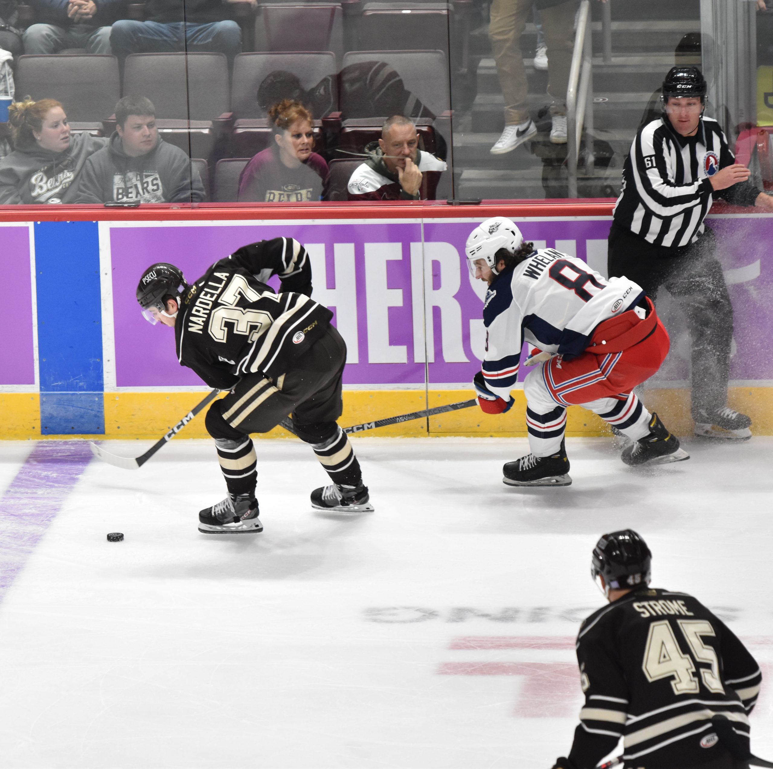 Hershey made it 2-0 when Bobby Nardella negated a Hartford breakout at the blue line and dished the puck across to Aaron Ness, who fed a backhand pass to Borgstrom in the high slot. Borgstrom fired a wrist shot over the glove of Domingue for his third of the season at 16:50 that eventually stood up as the game-winner.